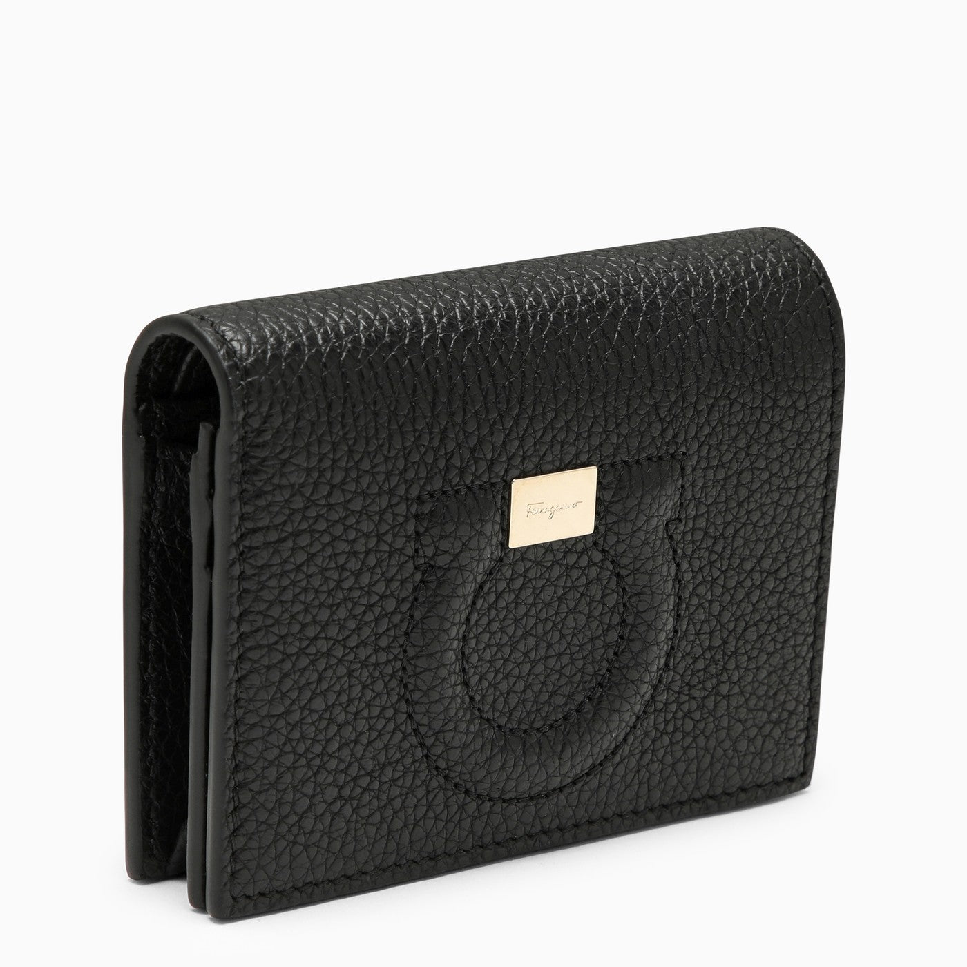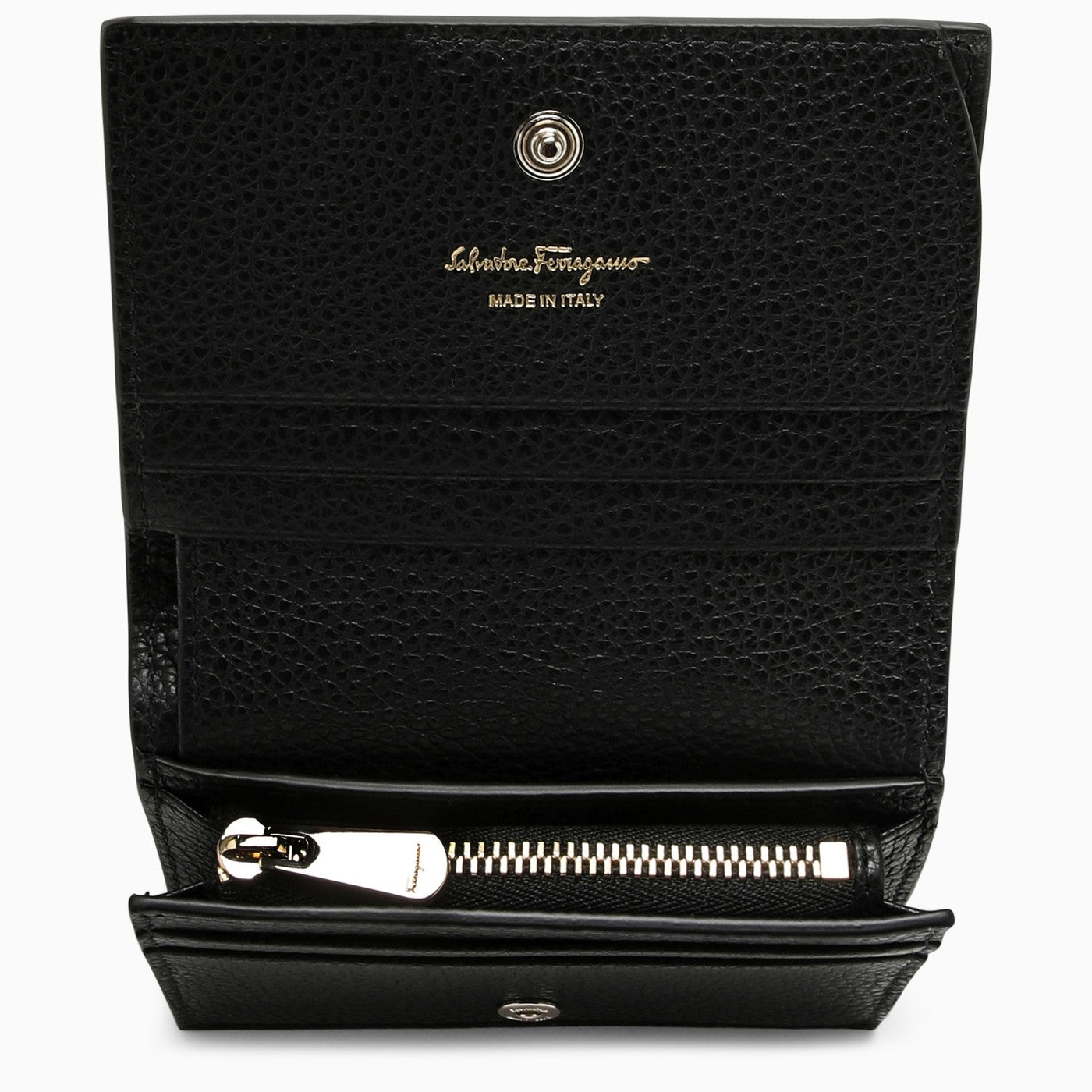 Black leather small wallet from Ferragamo featuring a logo on the front, a press stud closure, several internal card slots and an internal zipped pocket.