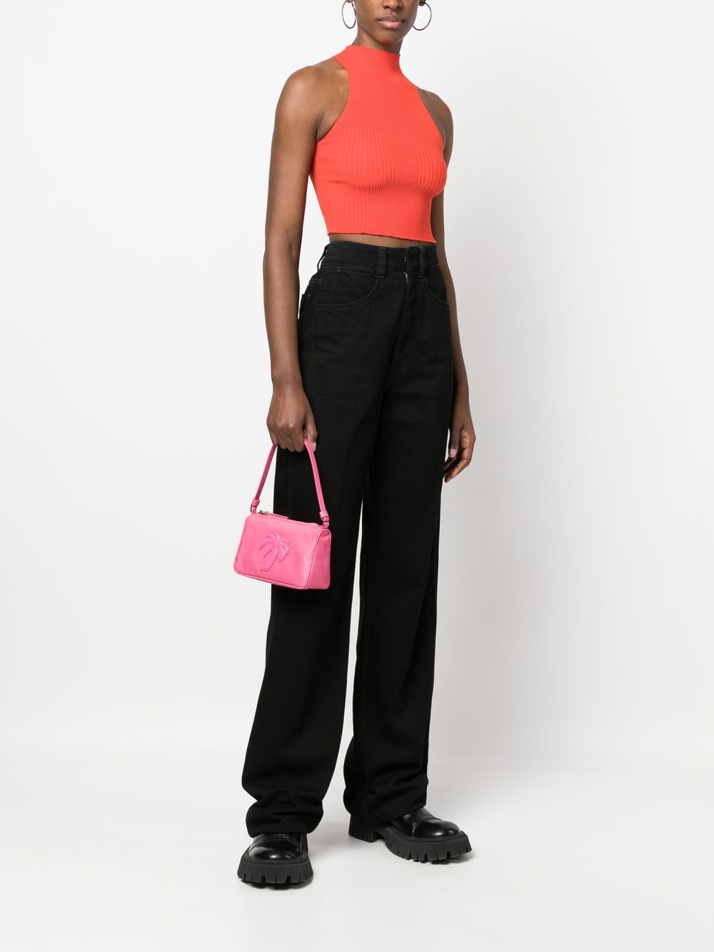 logo-appliqué shoulder bag from PALM ANGELS featuring bubblegum pink, cotton, calf leather, appliqué logo and top zip fastening.