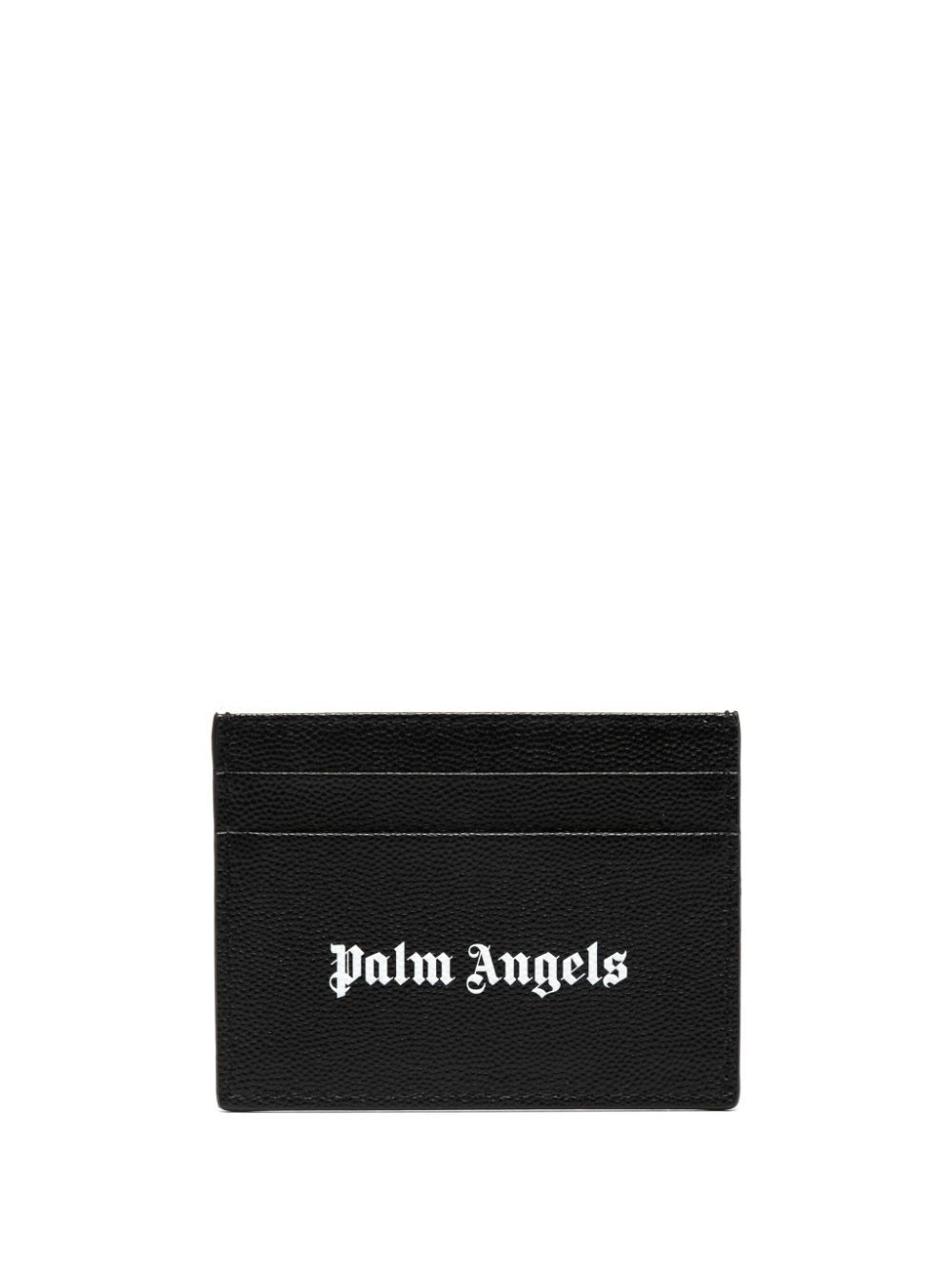 grained logo-print cardholder from PALM ANGELS featuring black/white, calf leather, grained texture, logo print to the front and card slots.