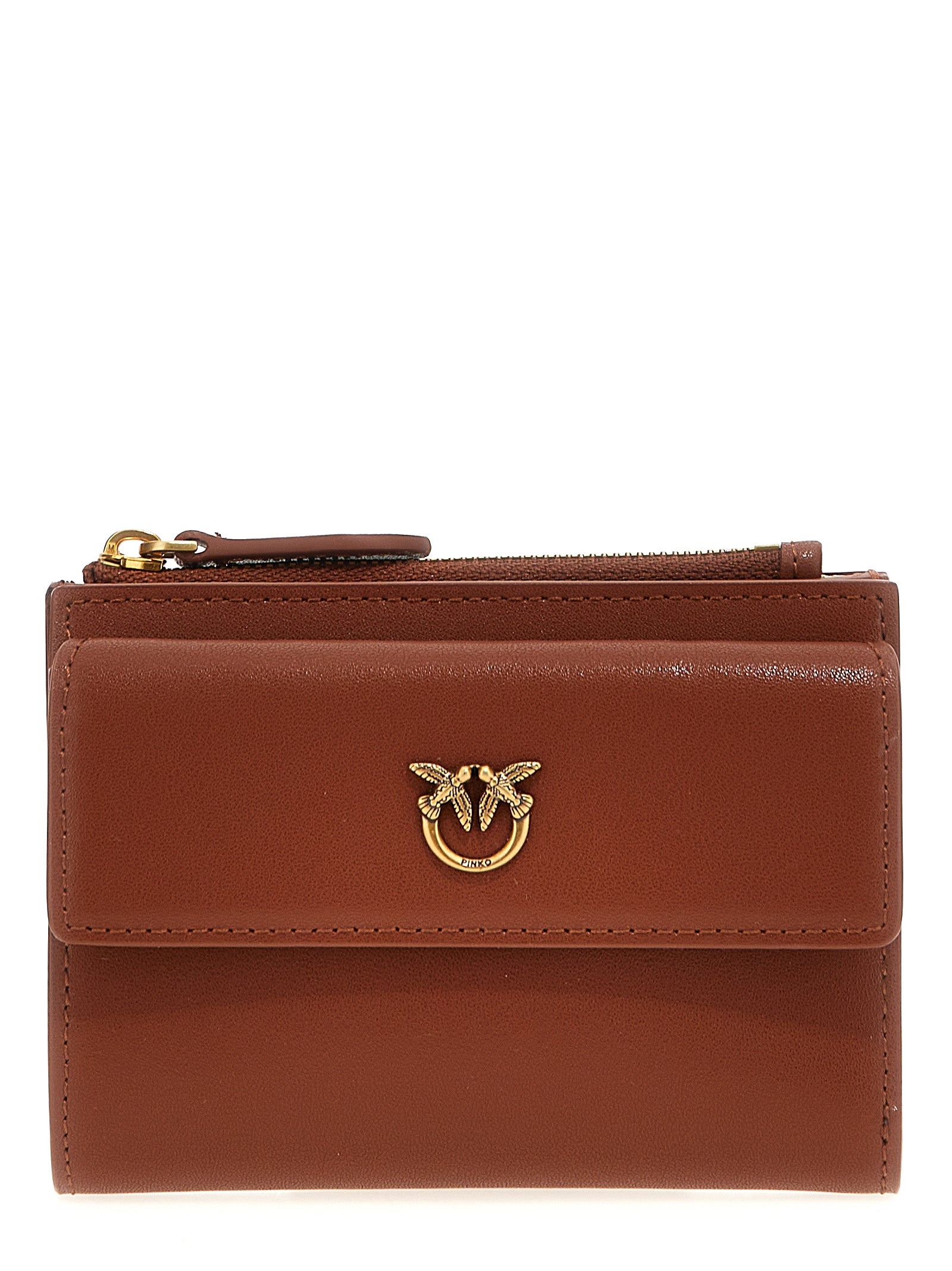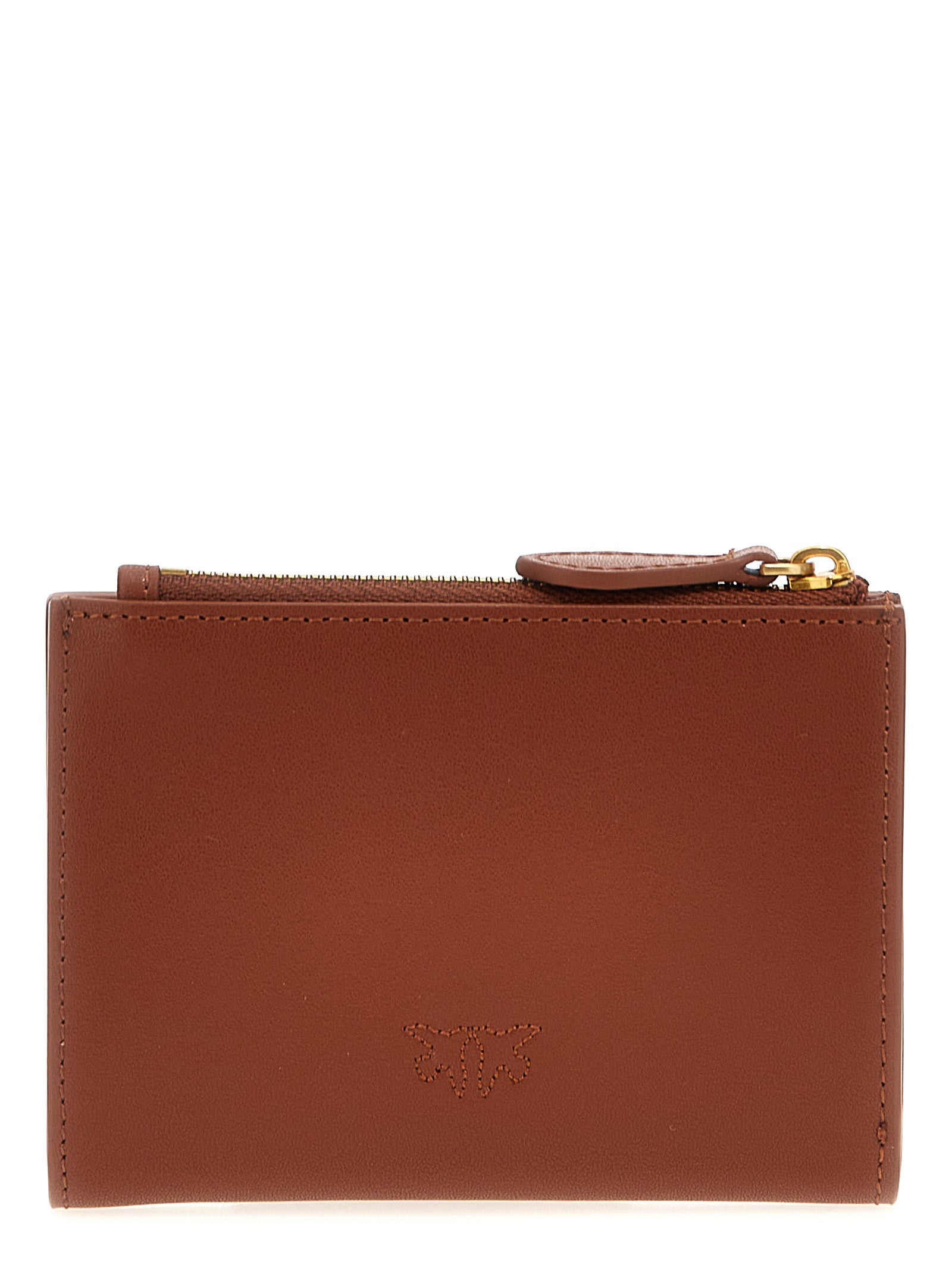 'Compact' silk leather wallet with snap button closure, back coin wallet with zip closure, front pocket with flap closure with snap button and metal logo.