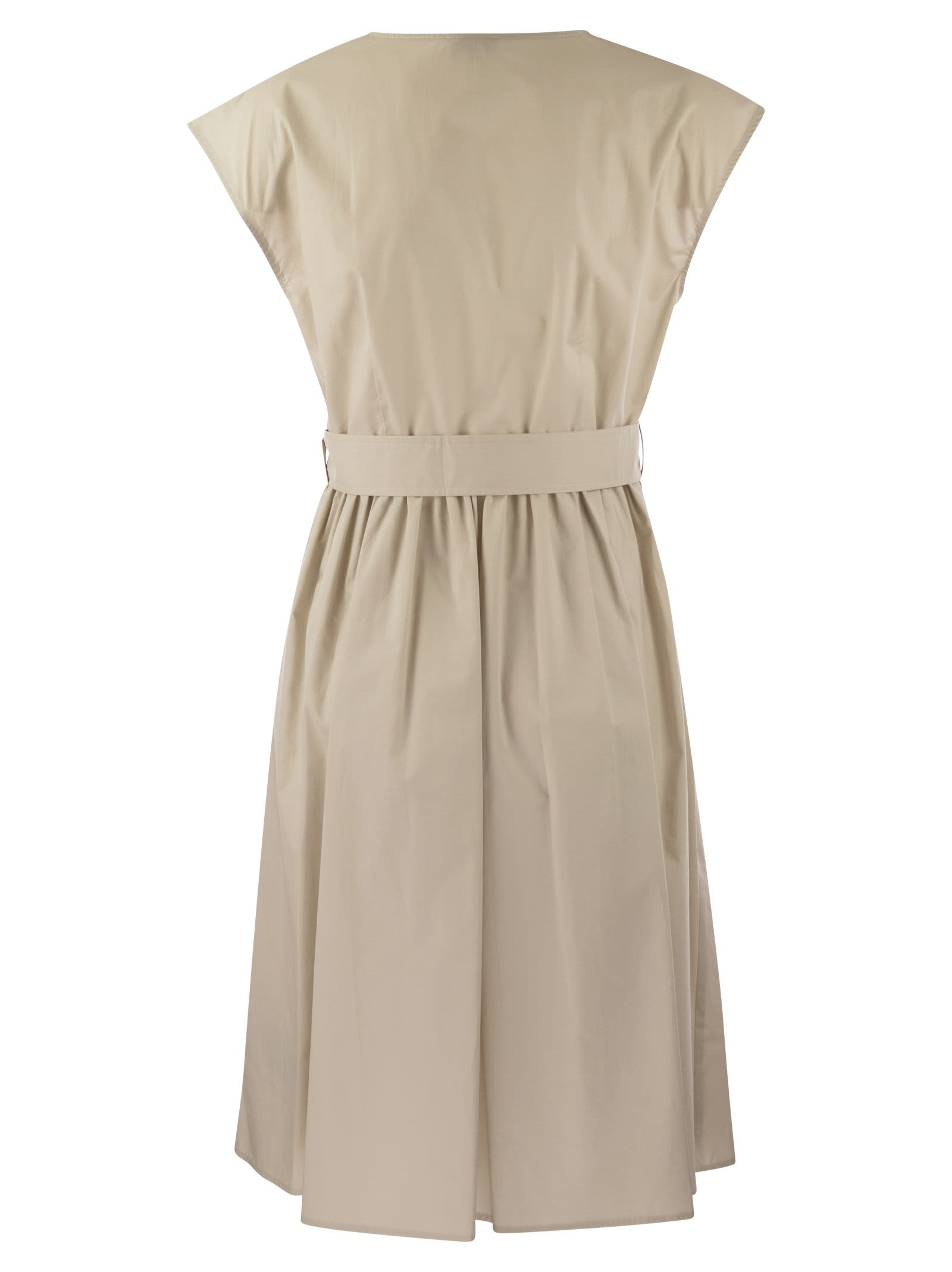 The pure cotton poplin dress can be worn with trainers or sandals depending on the occasion. The model has a feminine line with a V-neck, wing sleeves and a belt that enhances the waist. The wide skirt offers maximum freedom of movement and is finished with comfortable hip pockets. - Made of pure cotton poplin - V-neckline - Waist belt - Hip pockets - Zip fastening at the hip DESIGNER ID: CFWWDR0143FRUT3027 8867