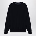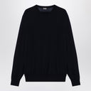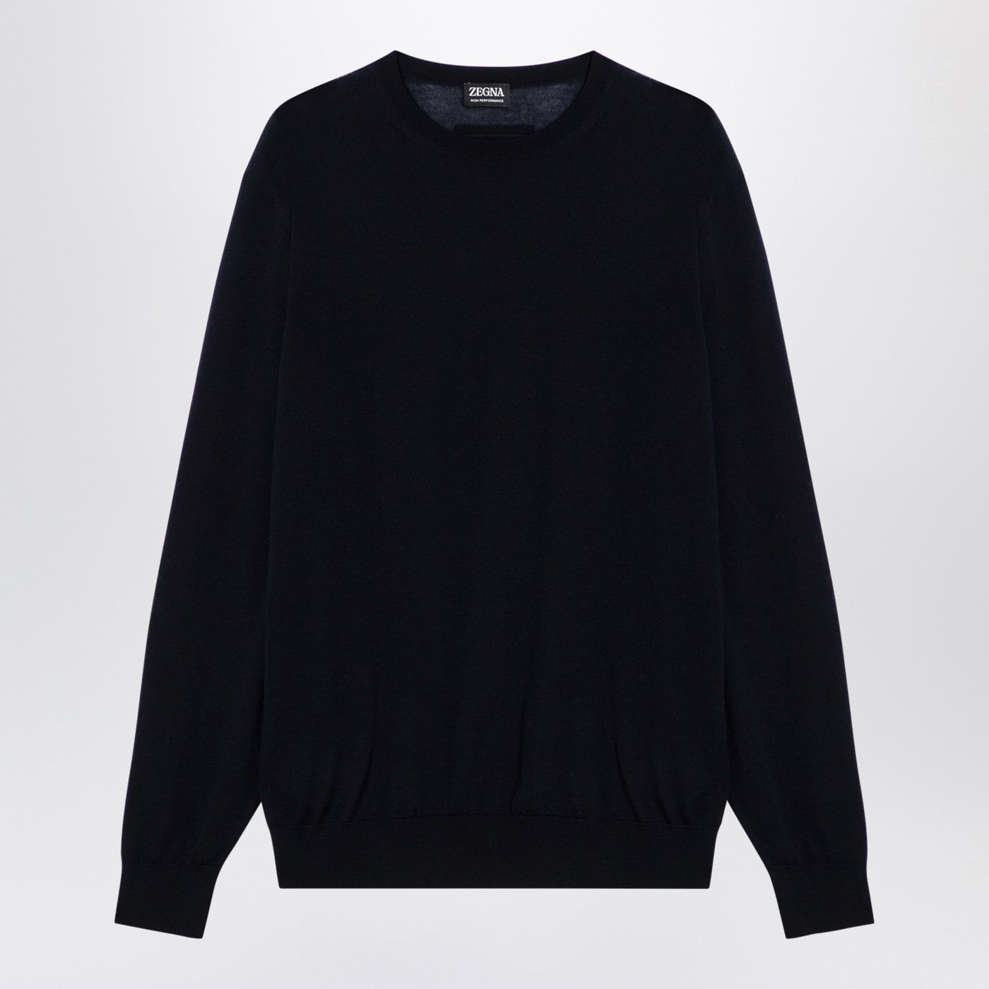 Crew-neck sweater by Ermenegildo Zegna in navy blue wool, featuring long sleeves, ribbed hems and straight hem.