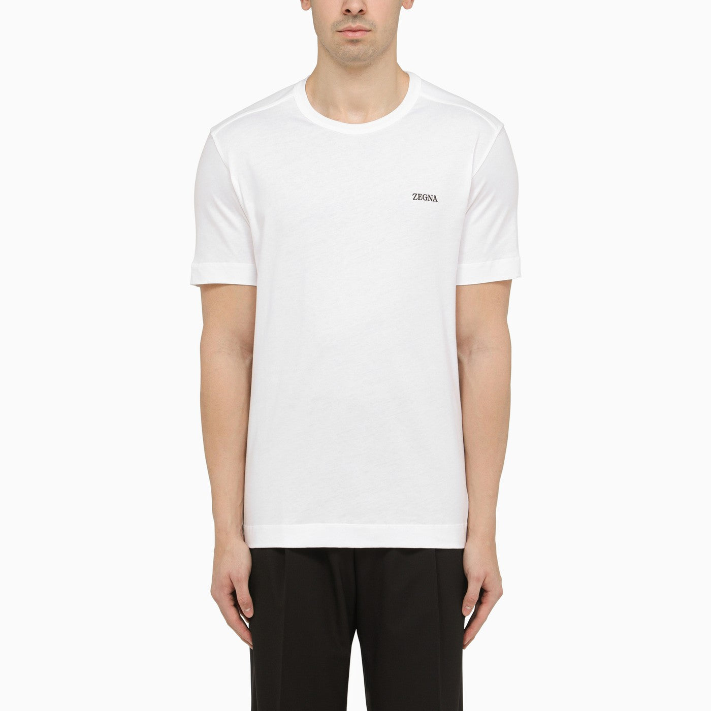 White cotton crew-neck T-shirt from Ermenegildo Zegna featuring a logo print on the chest, short sleeves and a straight hem.