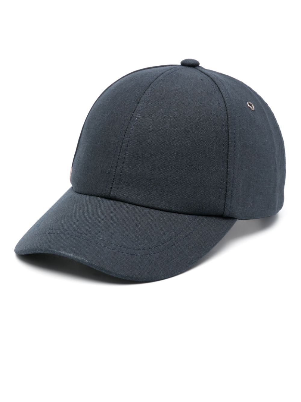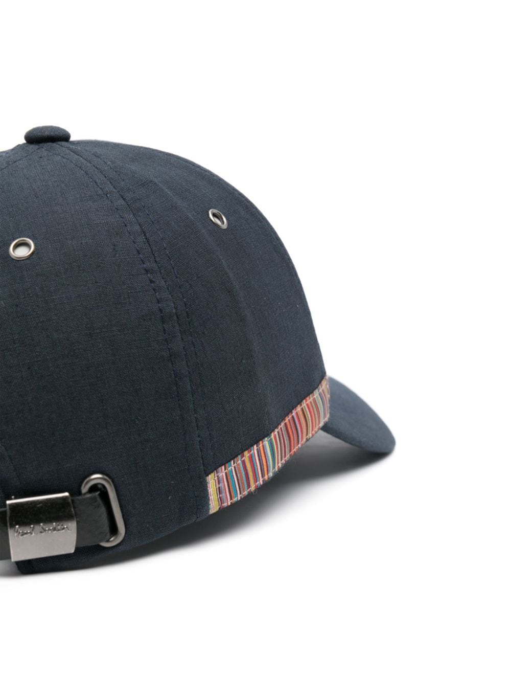 Navy Blue Linned/hør Poplin Tekstur Kunstner Stripe Mønster til side Logo-Engraved Buckle Fabric-dækket knap ved Crown Eyelet Vents Six-Panel Construction Round Crown CURVED PEAK BACK SLIDE BUCKLE Fastgøring