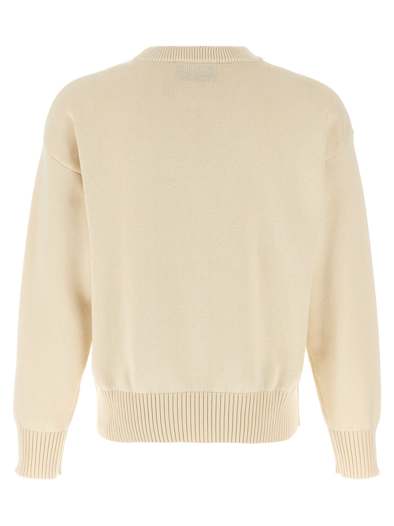 Cotton and wool blend sweater with tone-on AMI-tone embroidery on the front, crew neck, long cuffed sleeves.