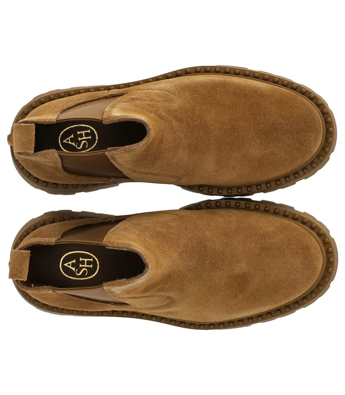Genesis stænger Chelsea Boot af Ash lavet af kamelfarvet ruskind, med elastiske bånd på siderne, Golden Stud på bagsiden, læderfor og indersål. Gummisål med gummierede mikrobud langs profilerne. Højde 5 cm.