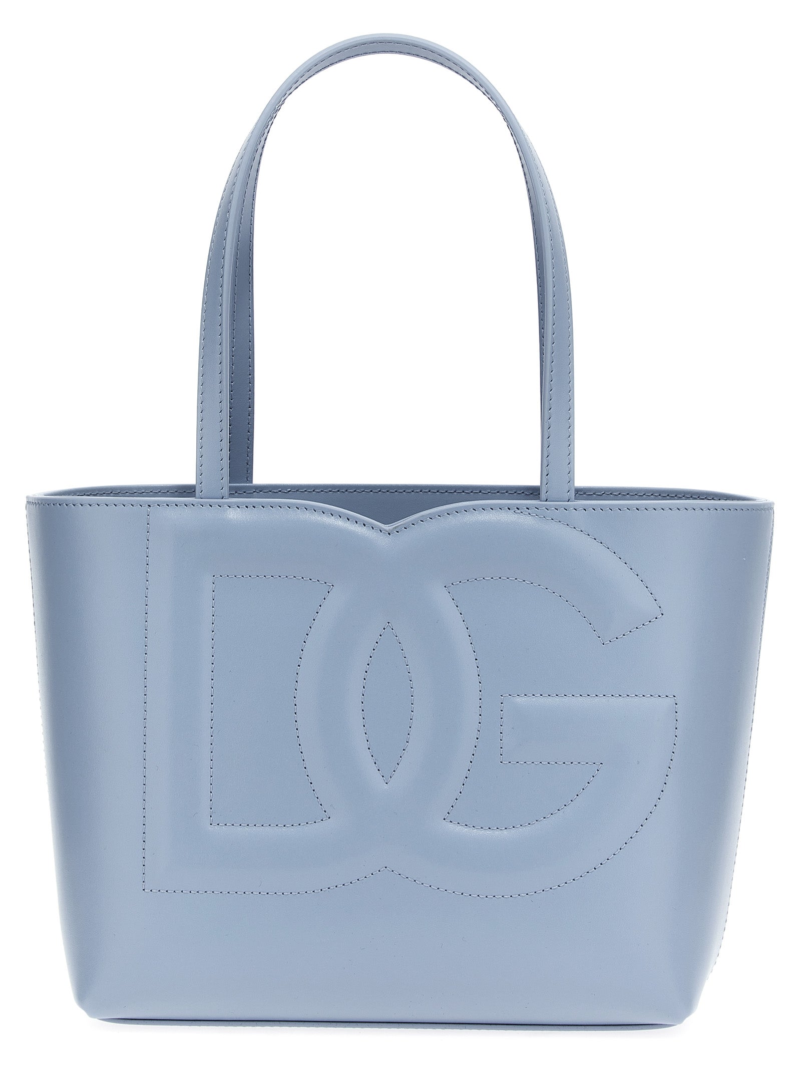 Indkøbspose lavet af kalv læder og med en tredimensionel quiltet DG-logo, kalv læder tophåndtag, trykt stofforing, lynlås og flad lomme.