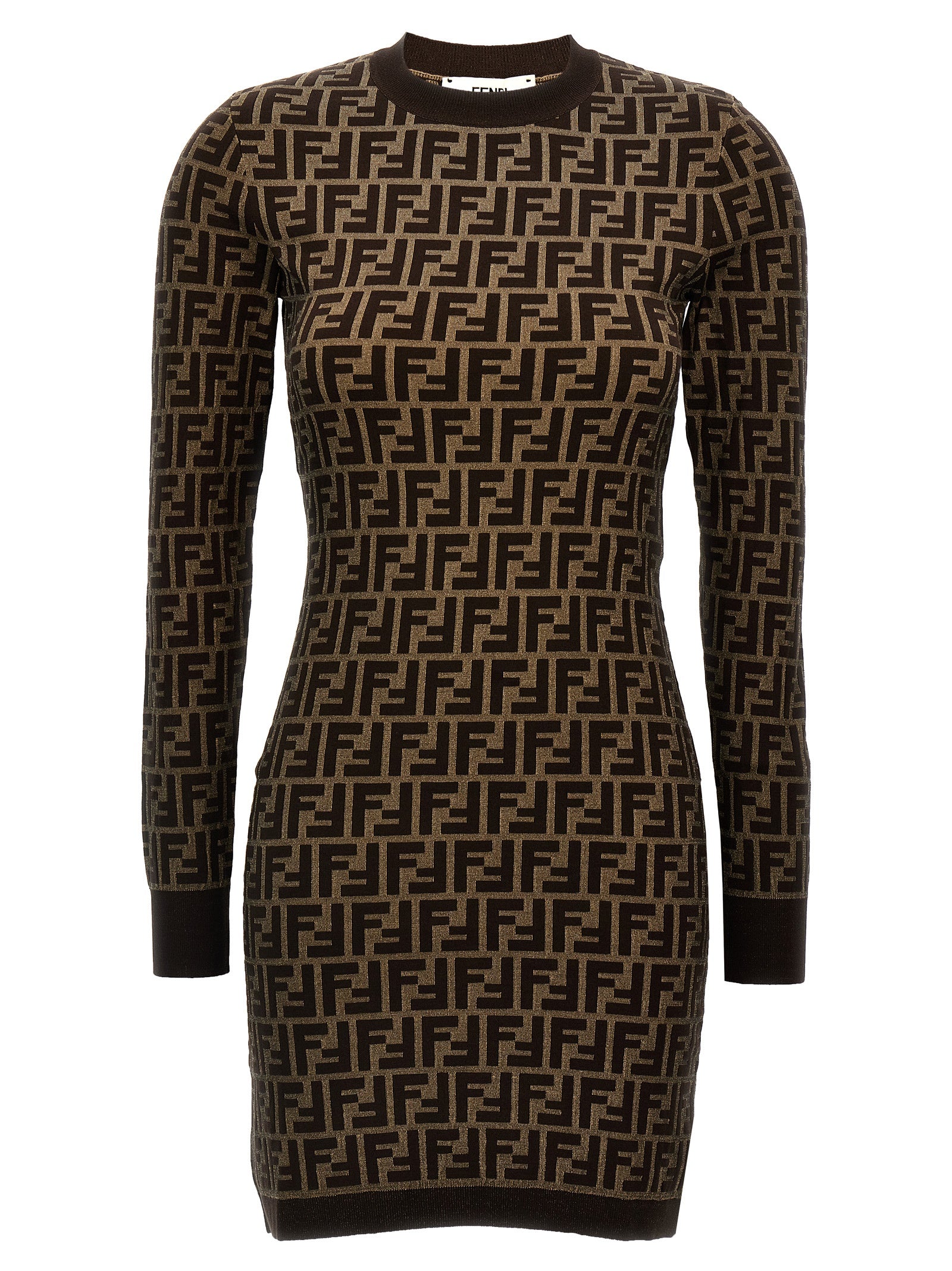 Jacquard bomuldskjole med alt-over 'ff' mønster, besætningshals, lange mansjetter.
