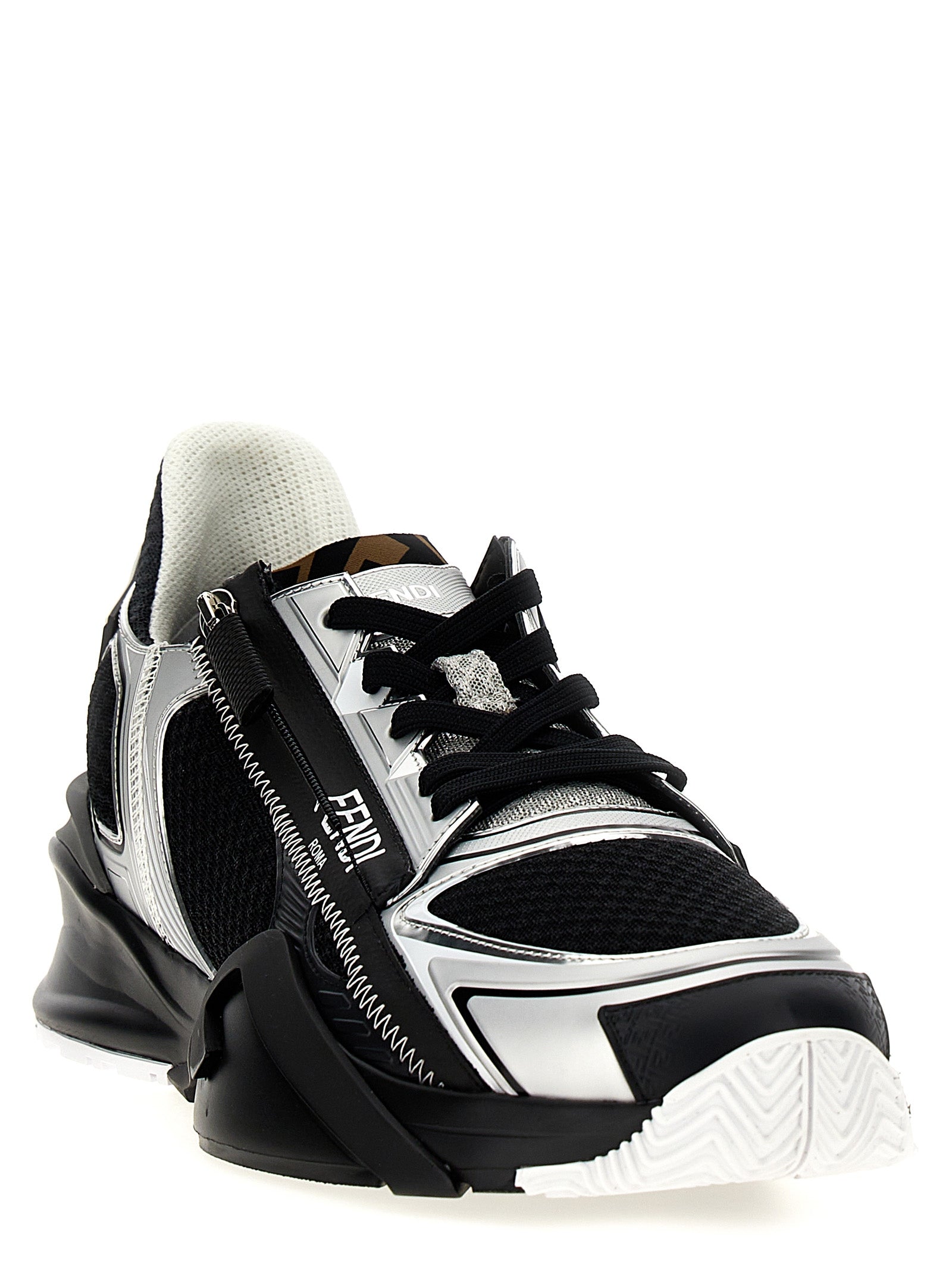Teknisk mesh 'flow' sneakers med elastiske snørebånd, lynlås på siden og bølget sål med udskåret F, præget Fendi -strømningsbrevlogoprint på hælene, afsluttet med FF Lycra® tunge, gummisål med F detaljer.