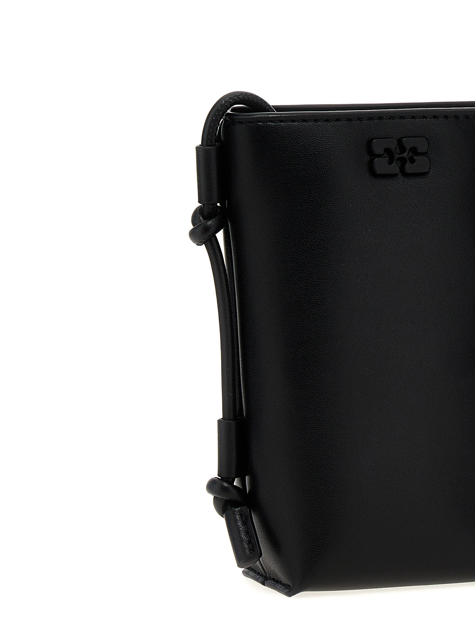 'Black Bou' læderblanding crossbody taske, front præget logo, magnetisk lukning, justerbar skulderrem med metaldetaljer. Bæredygtigt: Produkt fremstillet med genanvendte materialer.