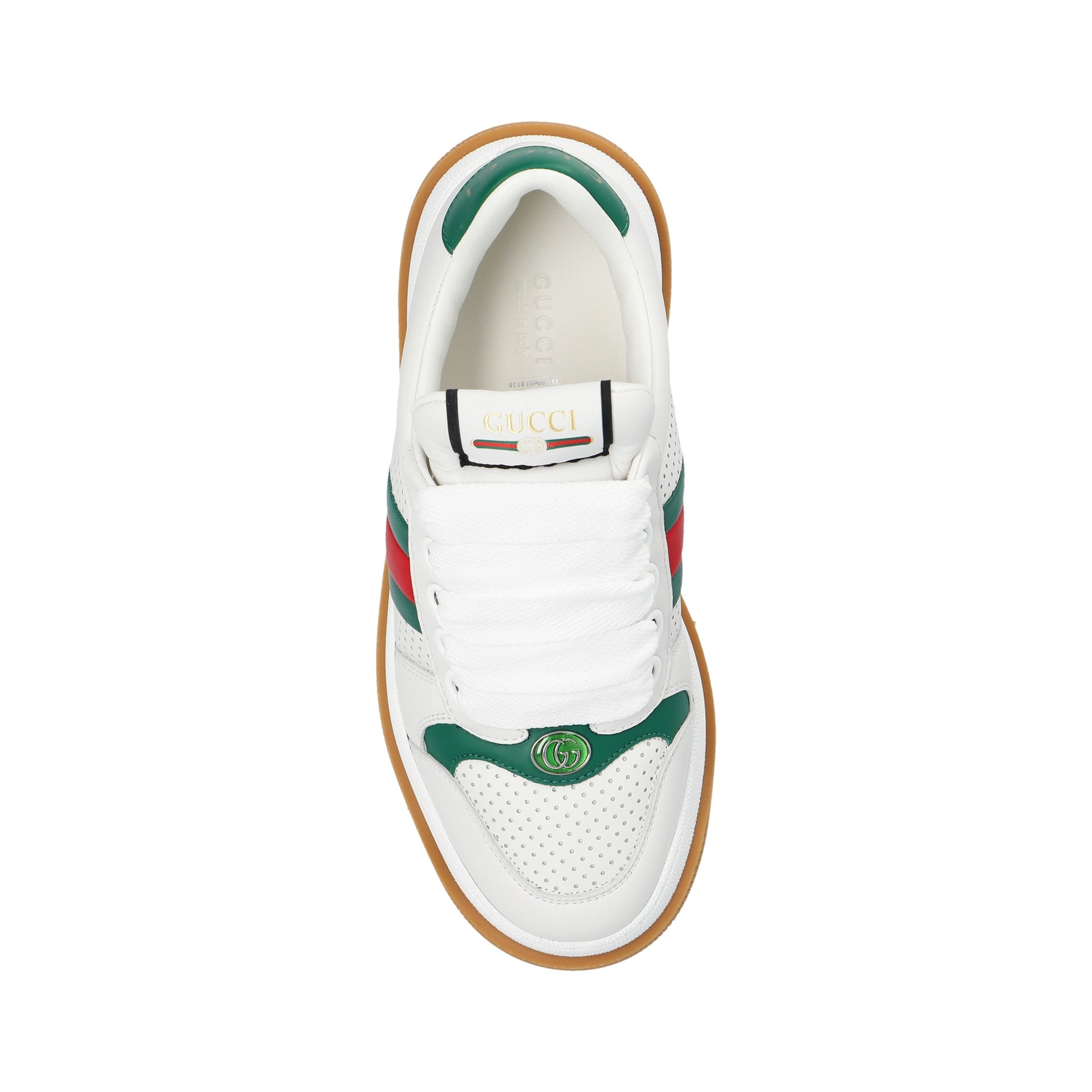 - Sammensætning: 100% kalv læder - indre: læder - Insole: læder - sål: gummi - rund tå - perforeret detalje - front snørelukning - detaljer i top- og ryglogo - grøn og rød webdetalje - lavet i Italien -