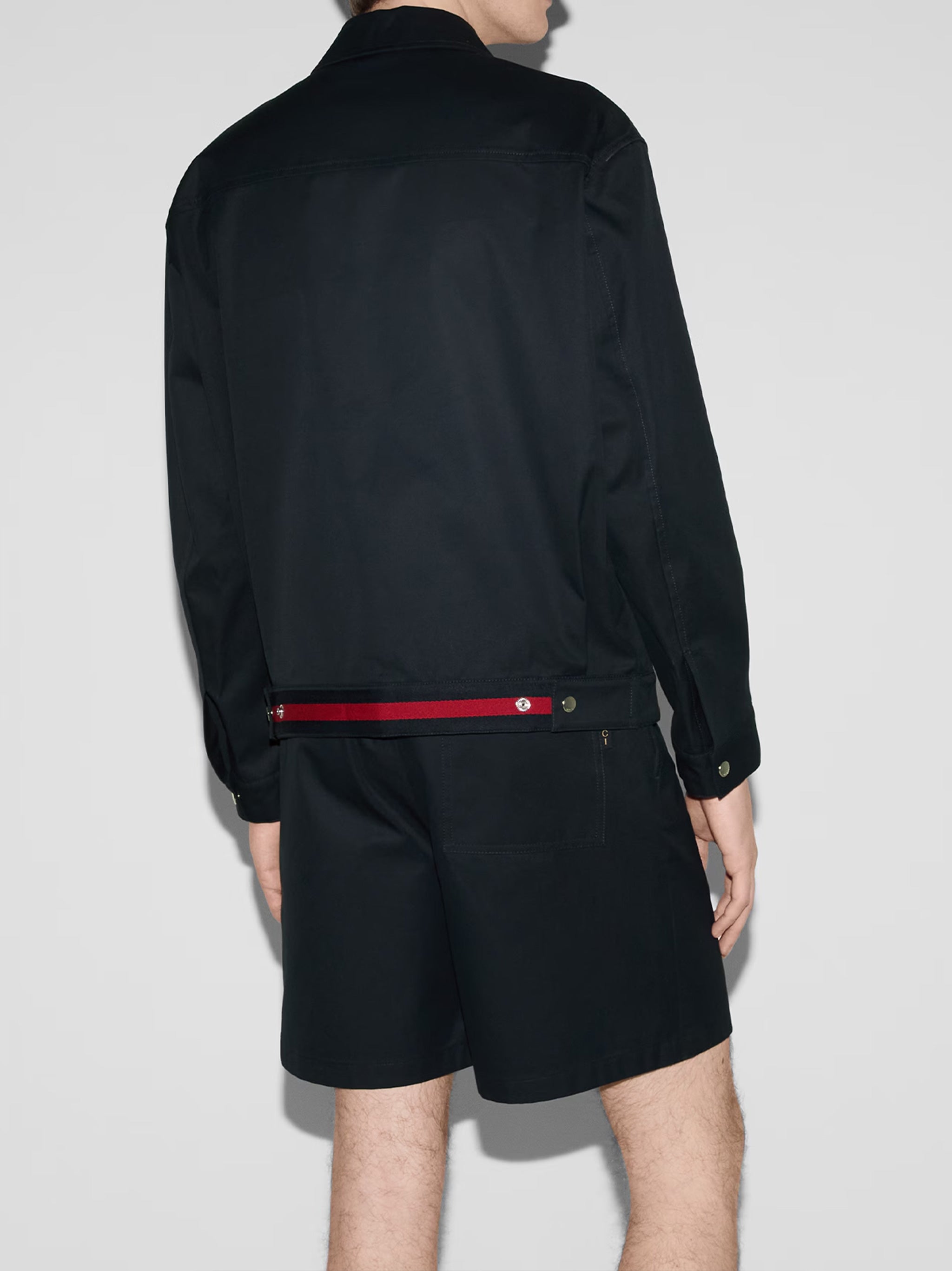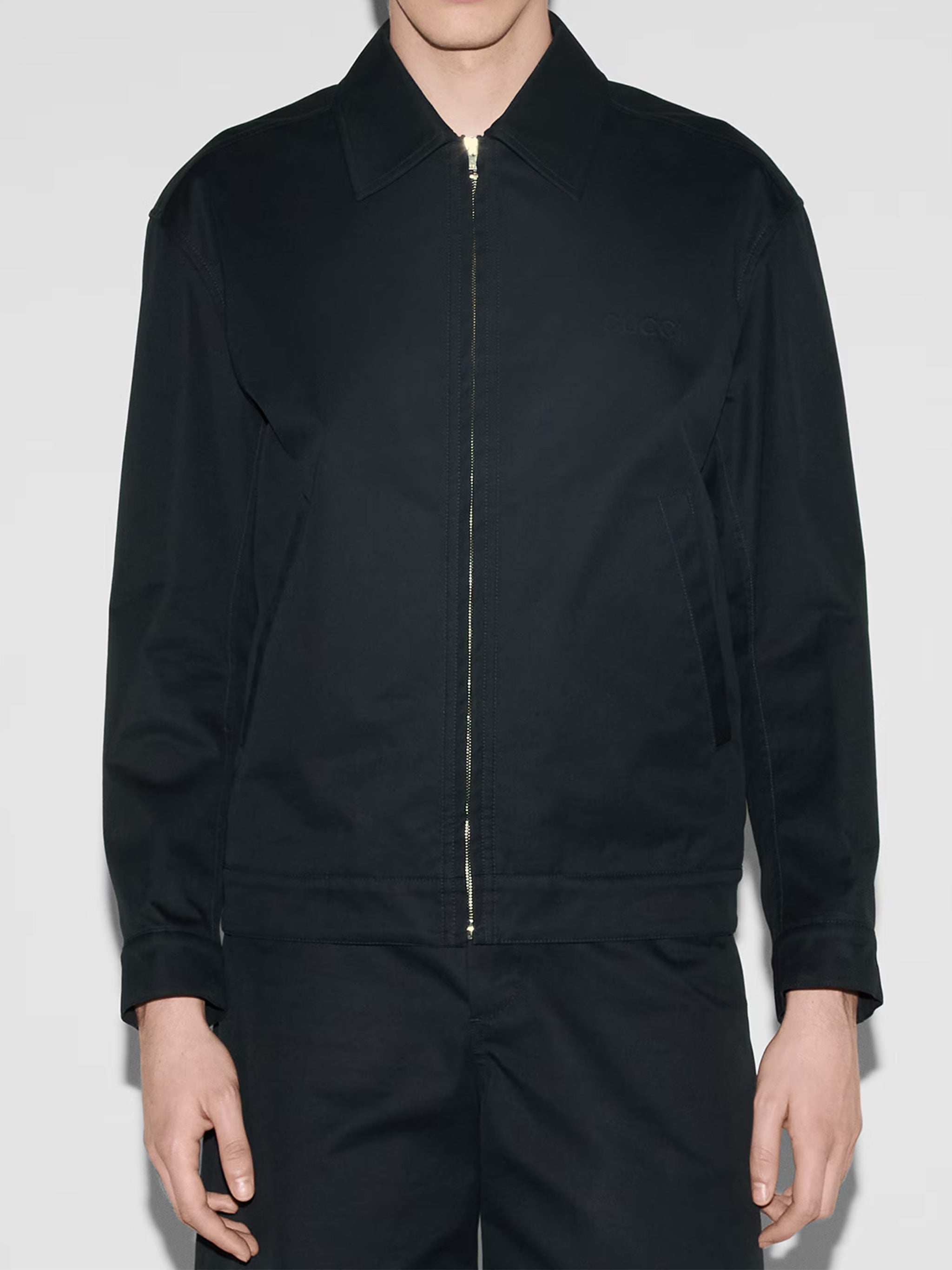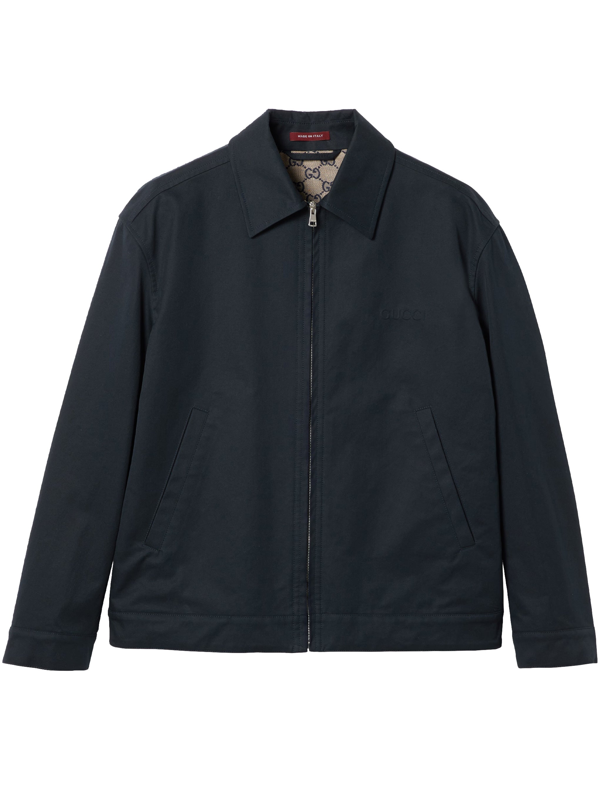 Gucci præsenterer denne jakke lavet af bomuldstwill med Gucci -detaljer i lettelse.