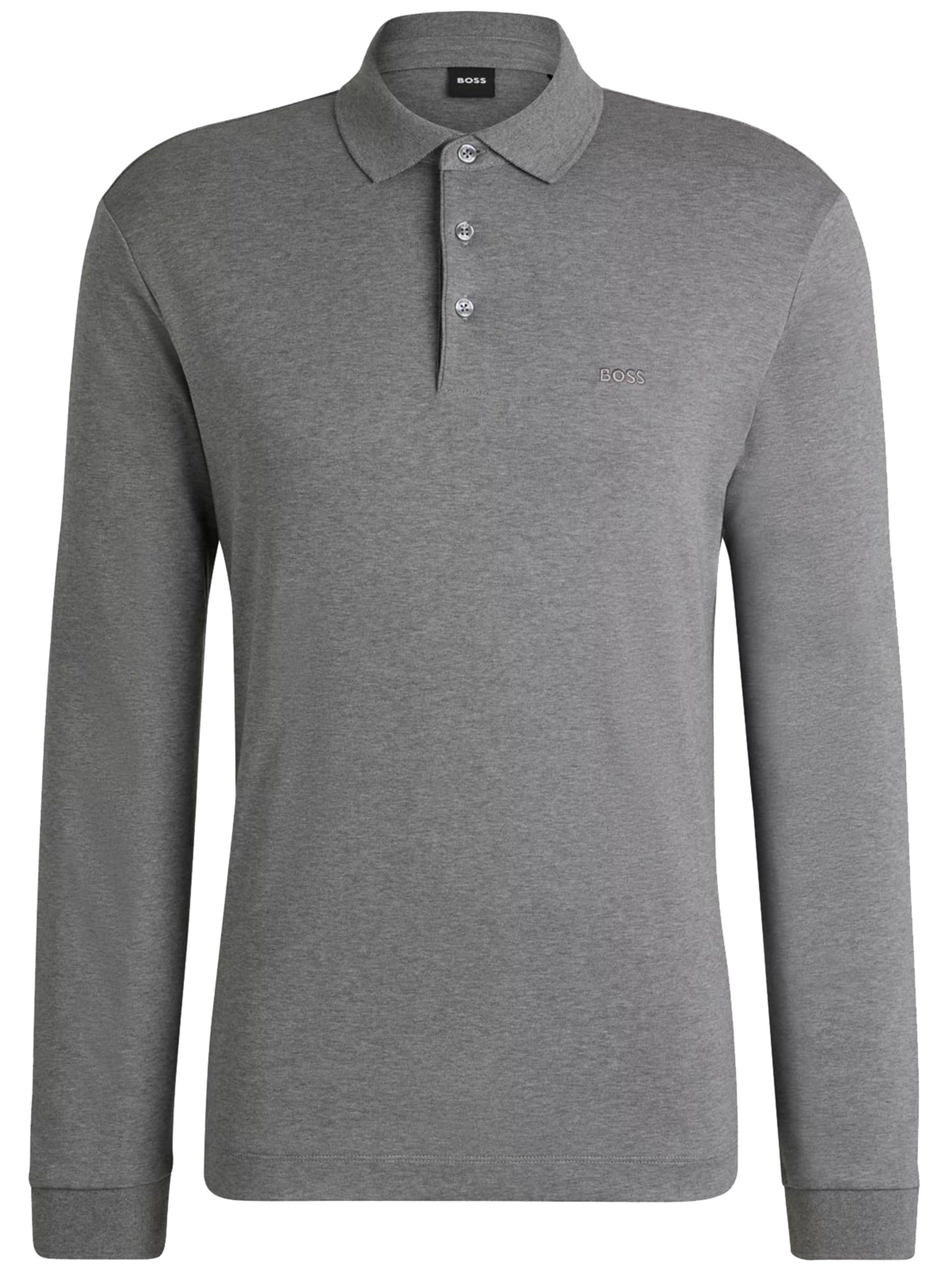 Polo in cotone biologico BOSS Uomo, dalla silhouette regular fit, con colletto a maglia piatta e maniche lunghe. Il logo ricamato tono su tono aggiunge un tocco di eleganza discreta. Realizzata con almeno il 60% di materie prime di alta qualità, è l`ideale per chi cerca uno stile sofisticato e sostenibile.