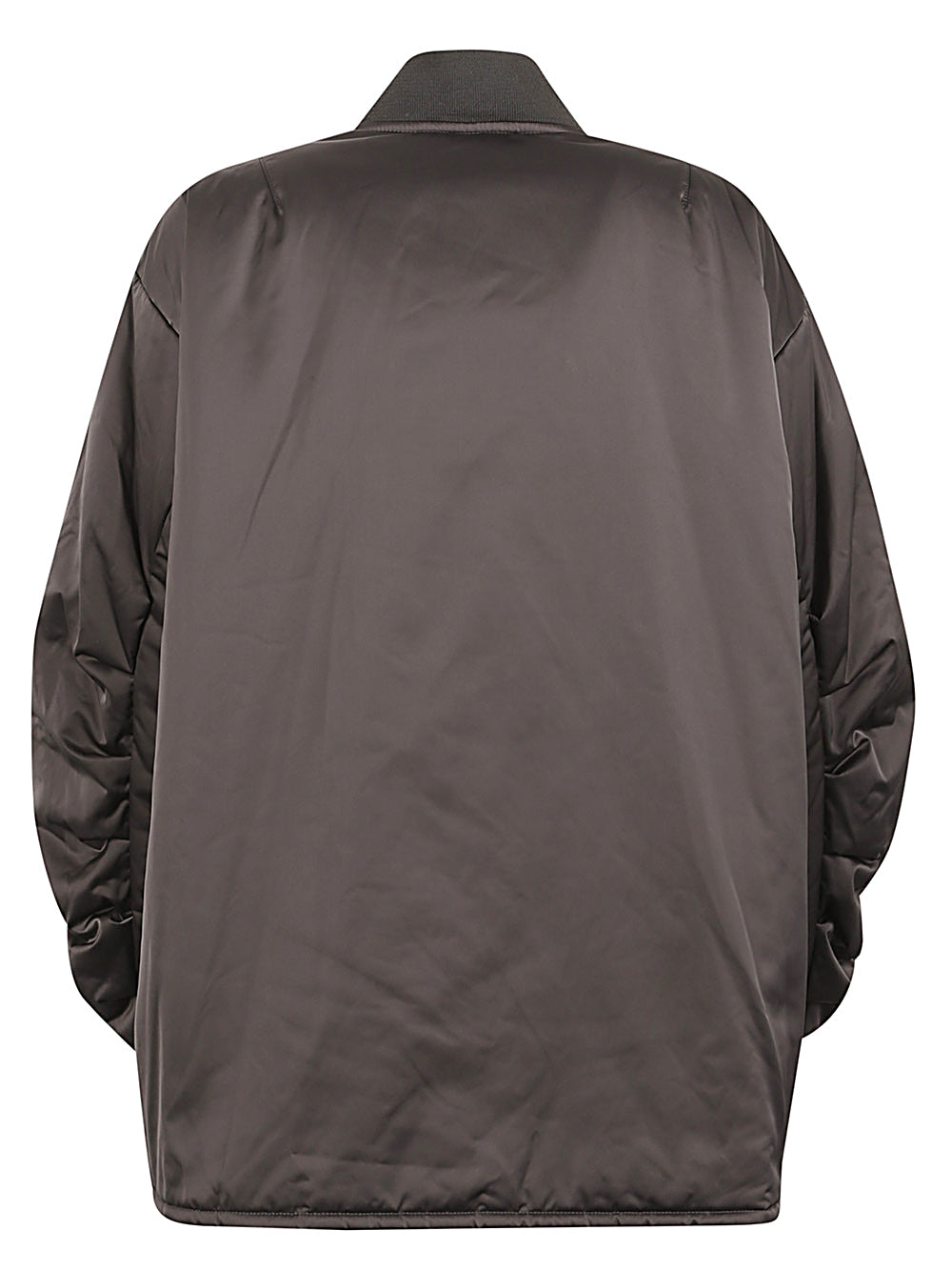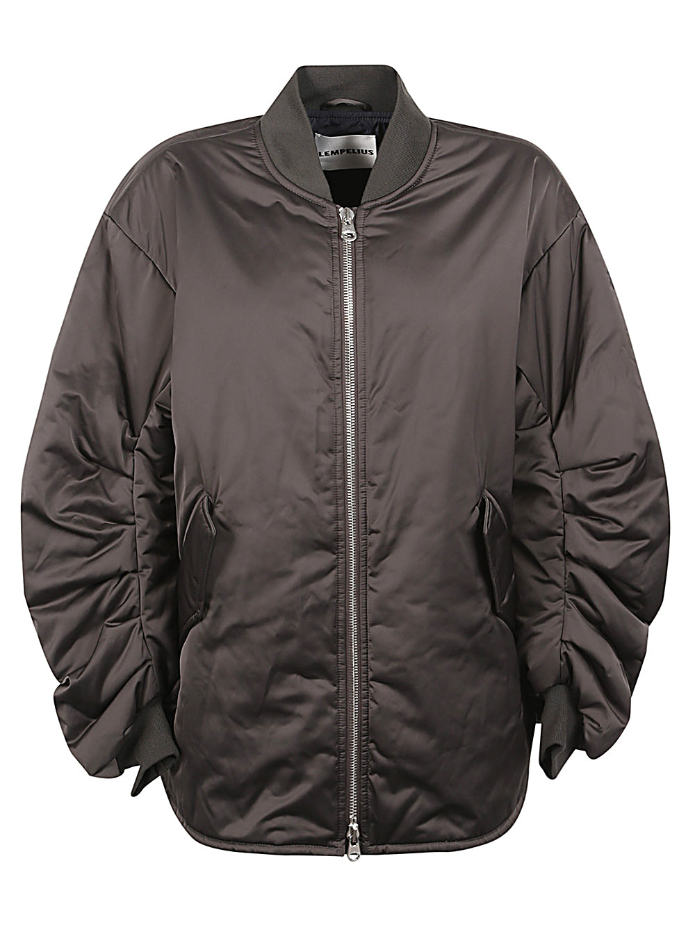 Crew-neck bomber jacket, long sleeves with elasticated ribbed hems and front zip closure.