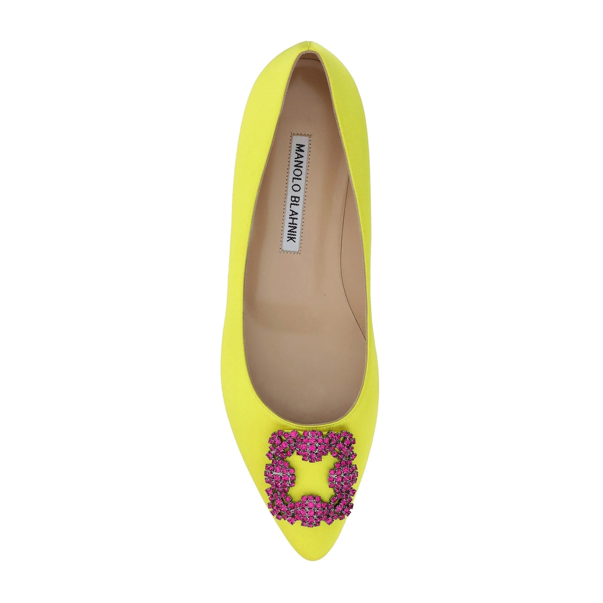 - Sammensætning: 100% silke - indre: 100% læder - Insål: 100% læder - Sål: 100% læder - Brandet indersål - Mandel tå - Iconic Swarovski Crystal Buckle påført på fronten - lavet i Italien -