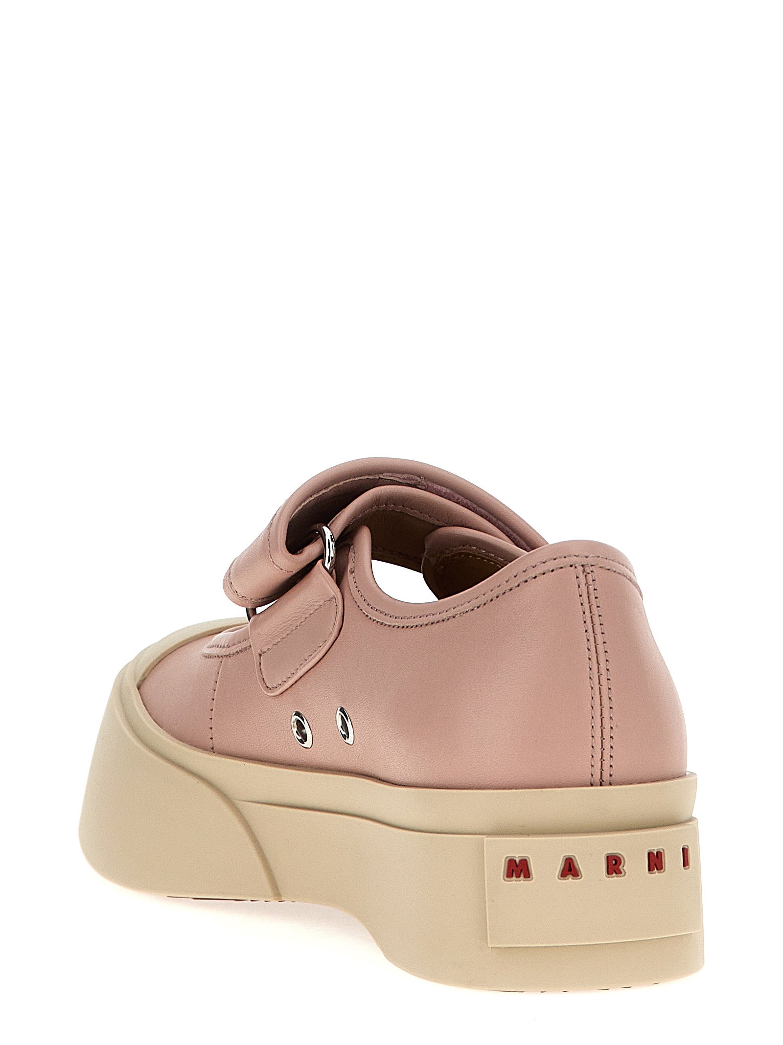'Mary Jane' nappa læder sneakers med rem, læderforing, tyk sål med platform og gummitå.