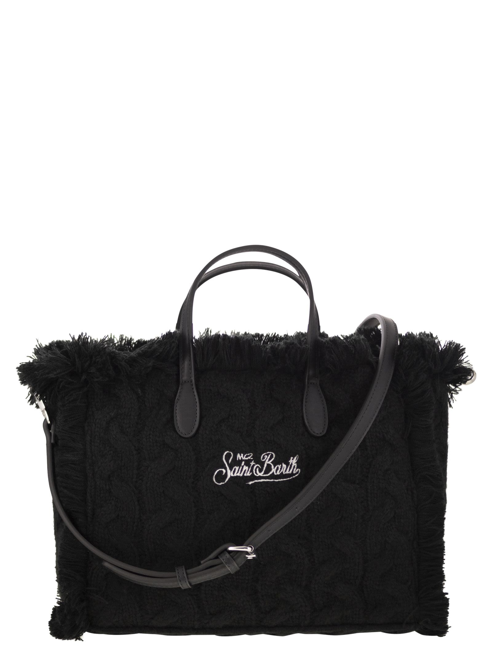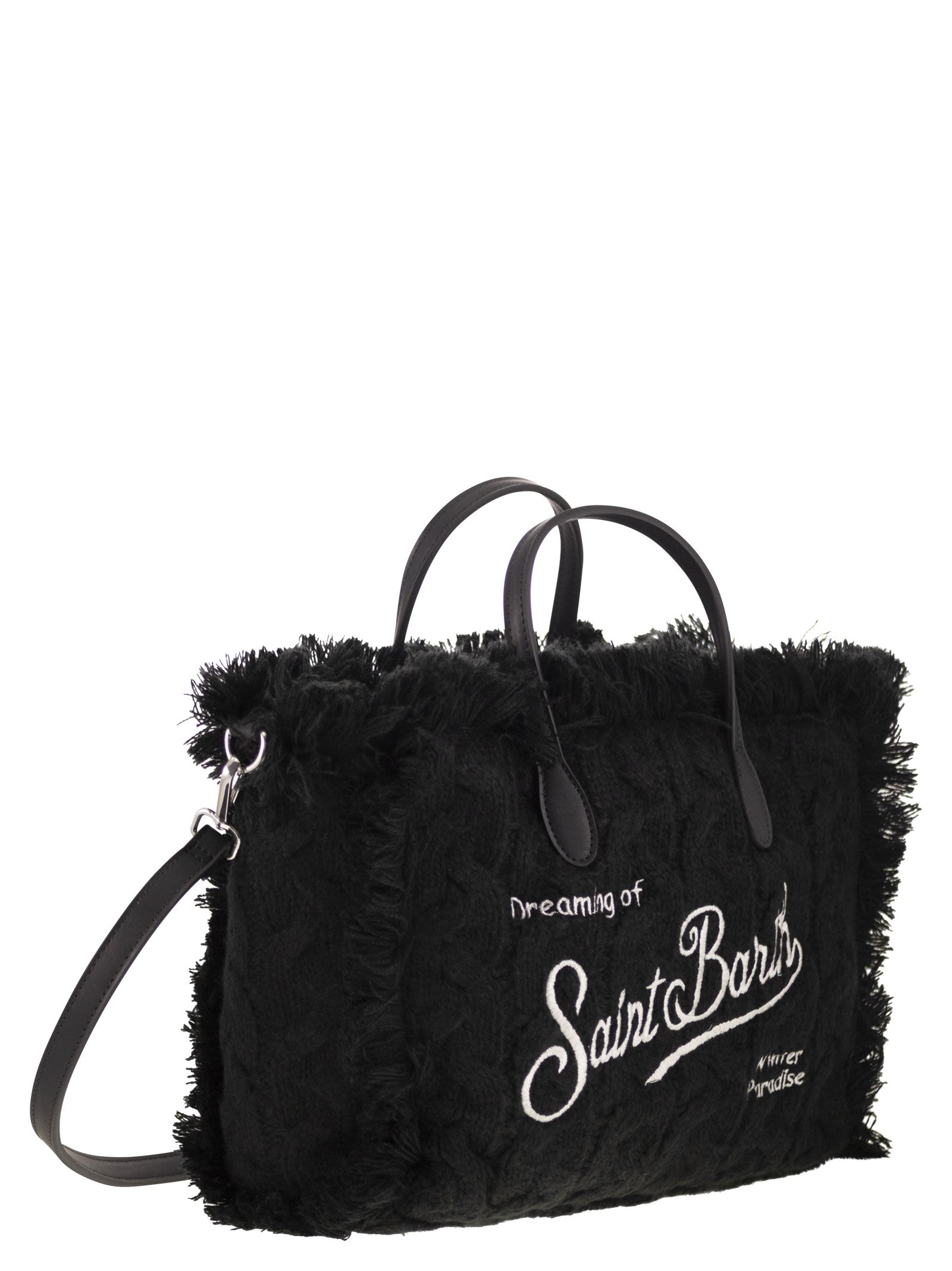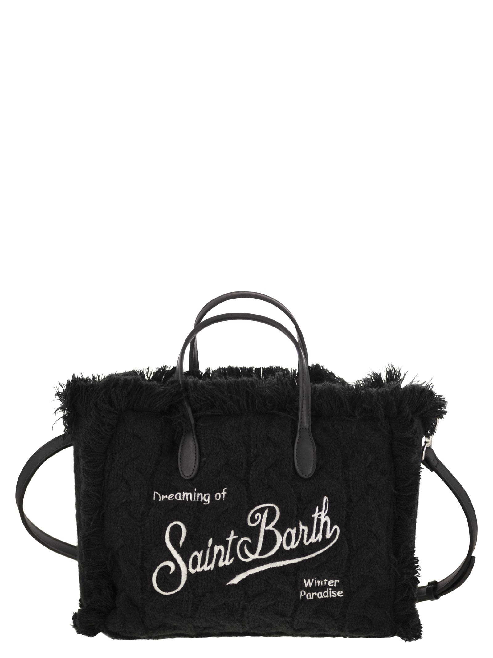 Stofpose med flettende arbejde, et must for vintersæsonen, praktisk tak til håndtagene til at bære den med hånden og den praktiske skulderrem for at bære den med komfort. - Saint Barth Logo - Frynsede kanter - Aftagelig og justerbar skulderrem - Faux læderhåndtag Designer ID: COL0003 01352G