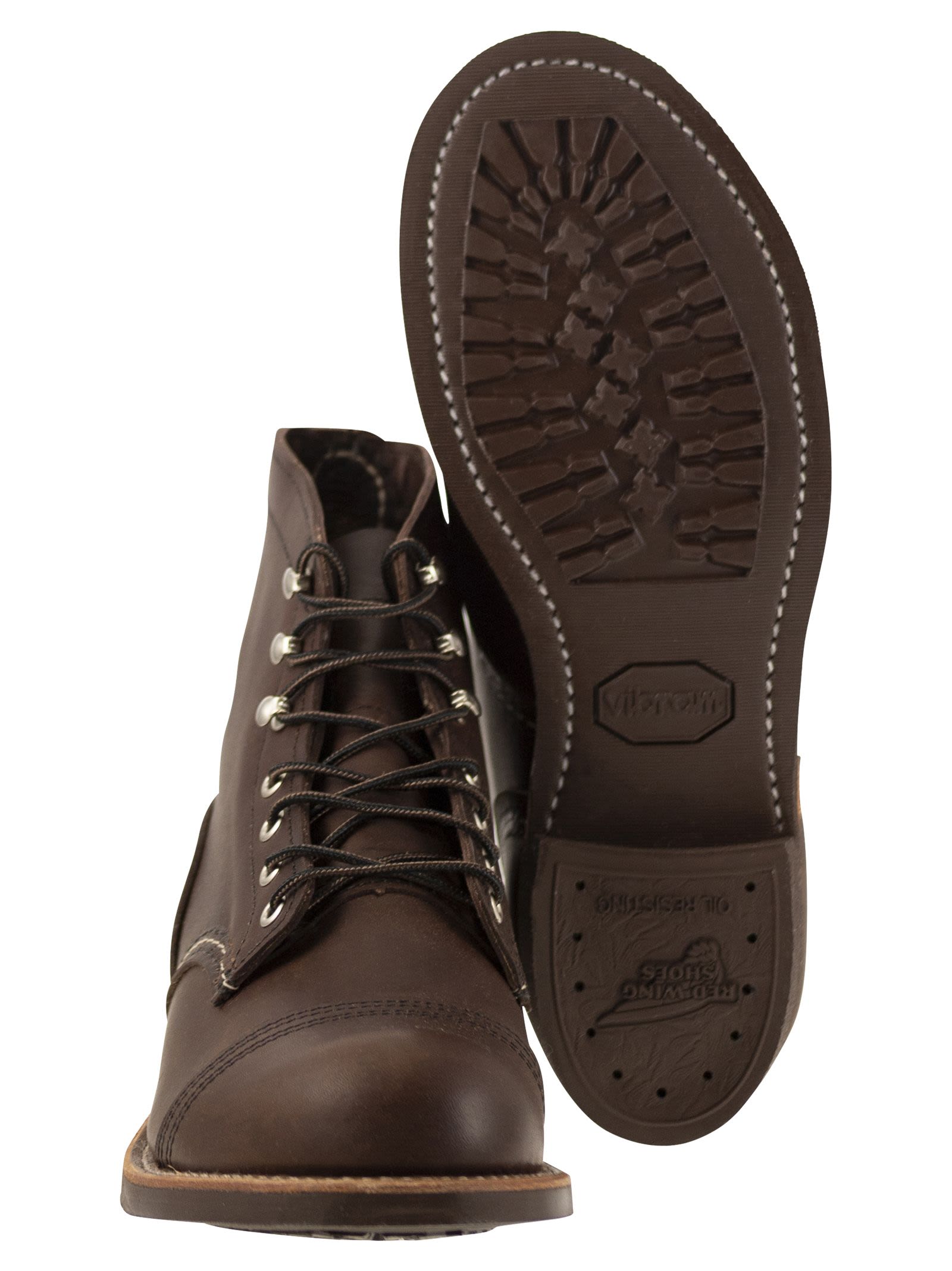 Red Wing Shoes Iron Ranger 8111 Amber Harnes er en klassisk rødvingesko rundt om arbejde sko og er fremstillet i Red Wing, Minnesota. Red Wing Shoes Iron Ranger -stil er inspireret af Mesabi Iron Range i det nordlige Minnesota, et robust område, der er kendt for sine jernminer. Mændene, der arbejdede i disse miner, blev kaldt 'Iron Ranger' og understregede deres eventyrlige mentalitet. Red Wing Iron Ranger kan let genkendes af sin dobbelt lædertåhætte, der giver ekstra sikkerhed. Derudover har Red Wing Iron Ranger ekstra hælbeskyttelse for bedre støtte. Den røde vinge -rav -sele ældes smukt, og alle naturlige mærker forbliver synlige. Red Wing 8111 Iron Ranger har en Vibram 430 mini lug-sål, som er fleksibel og olieafvisende. 8111 Iron Ranger har sort/brun taslan snørebånd. - Amber sele læder (oliebrun) - vibram 430 mini lug sole designer id: 8111 d rav sele