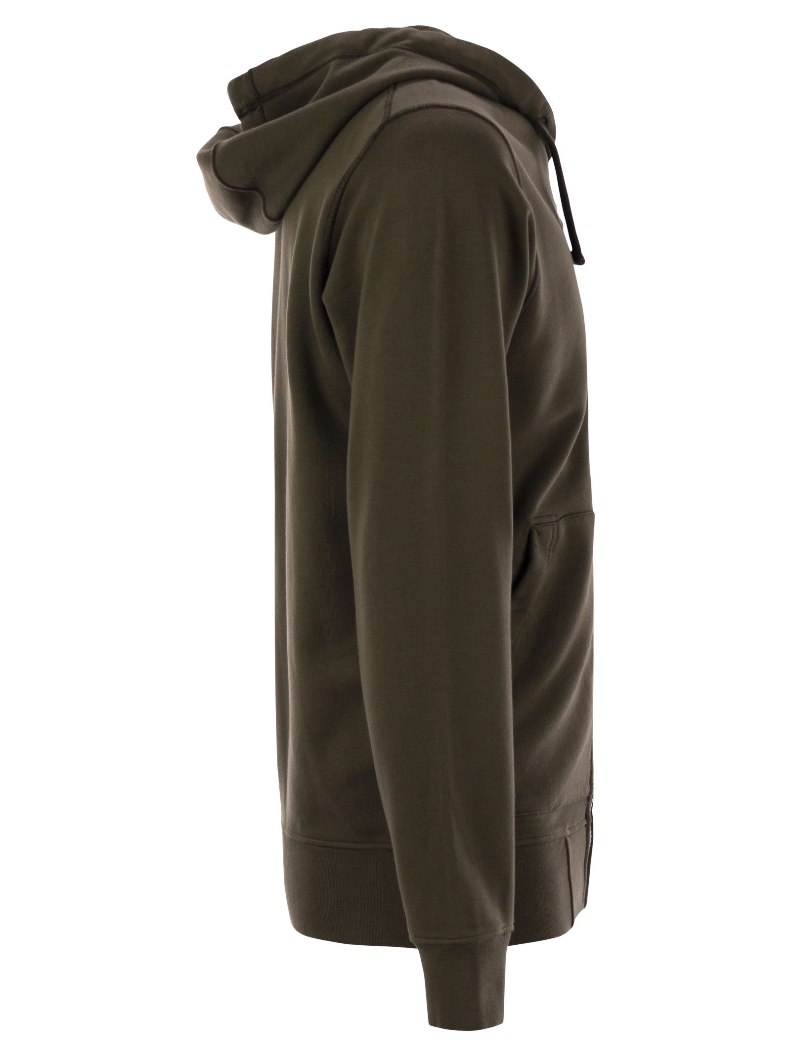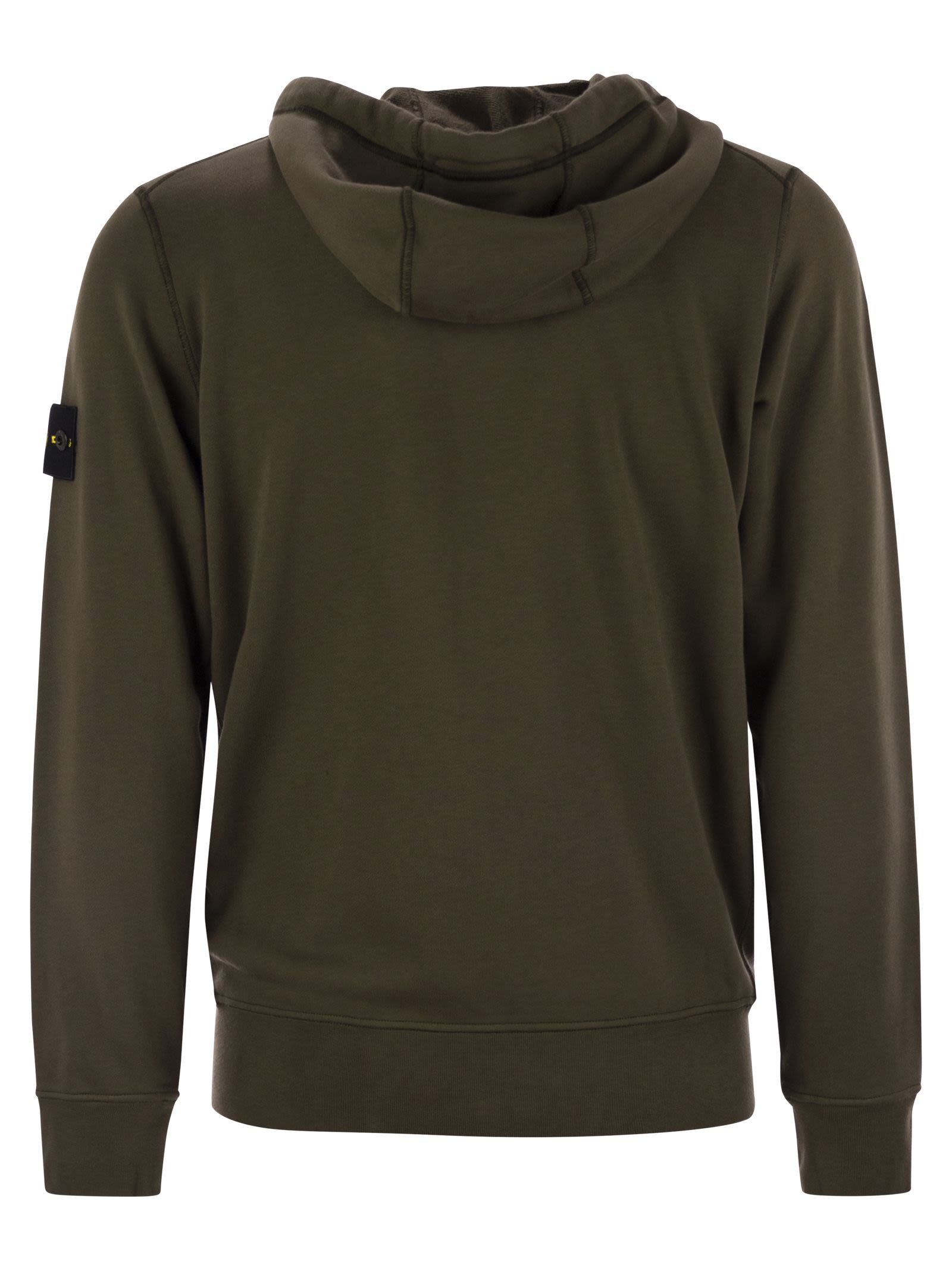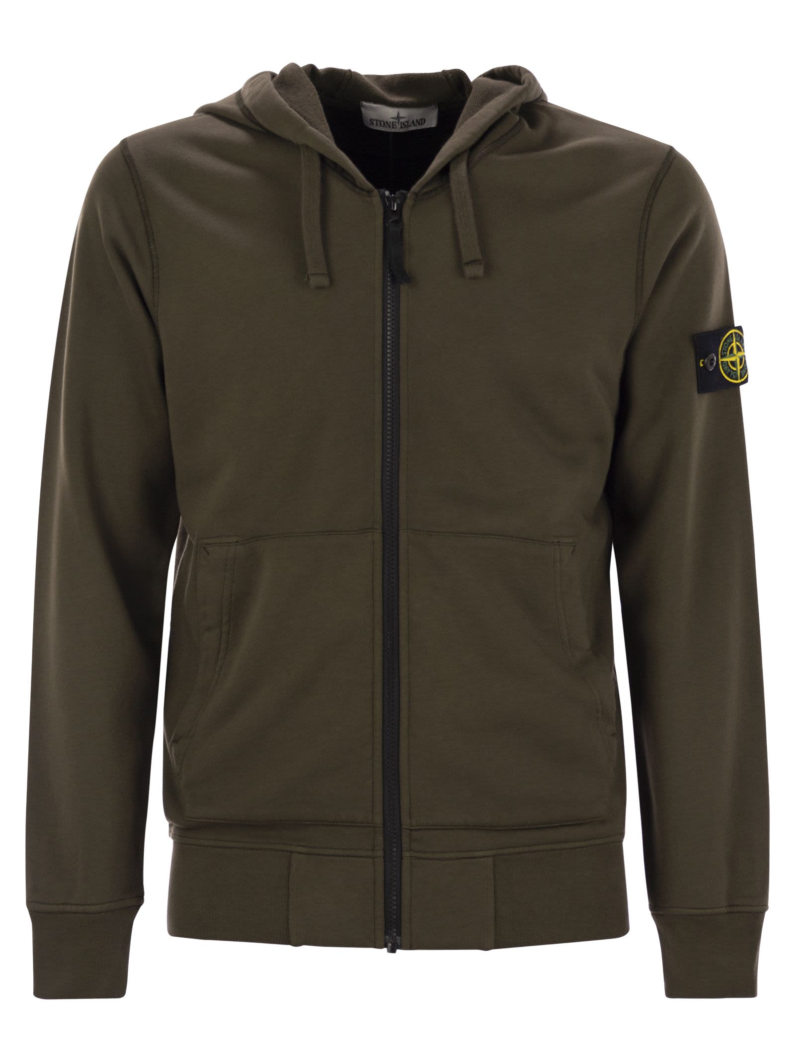 Organisk bomulds fleece-sweatshirt med lynlås i fuld længde, formet trækstring på hætte, skrå patch-lommer. Stone Island badge på venstre ærme. Overlock syning på hætte, skuldre, armhuller og sider. Ramme med indre foring under baghalsudskæringen. - Ribbede manchetter og bundbånd. - Zip Fastening - Regular Fit Designer ID: K1S156100042S0051 V0054