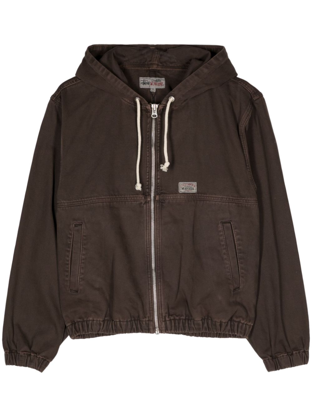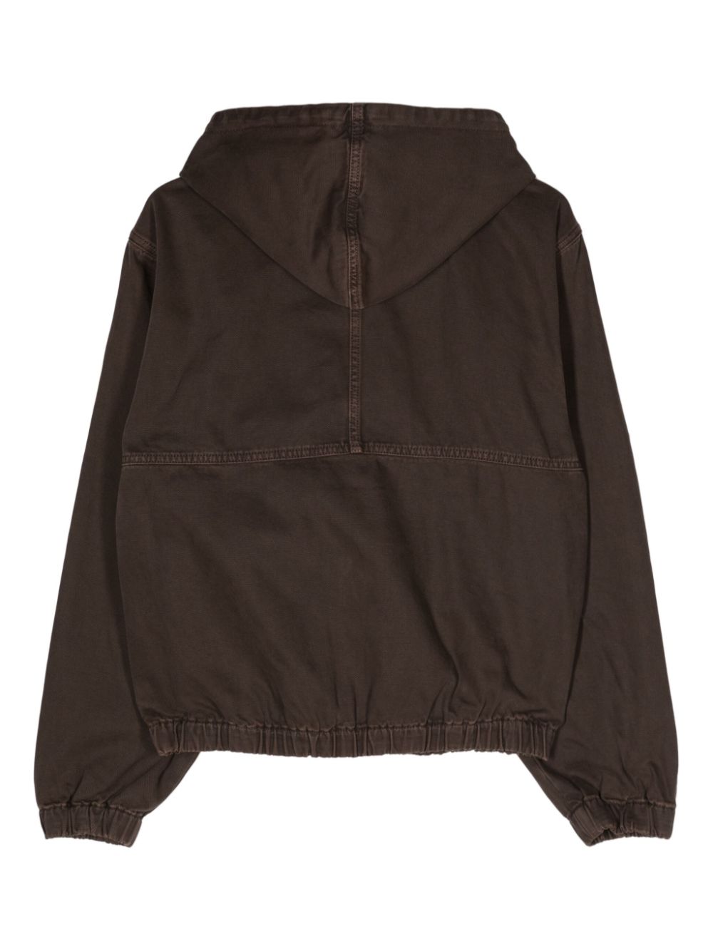 Kaffe brunt bomuld lærred tøj farvet logo patch til den forreste slouchy drejning hætte front lynlås fastenes lange ærmer elastiske manchetter to side welt lommer elastisk hem unined