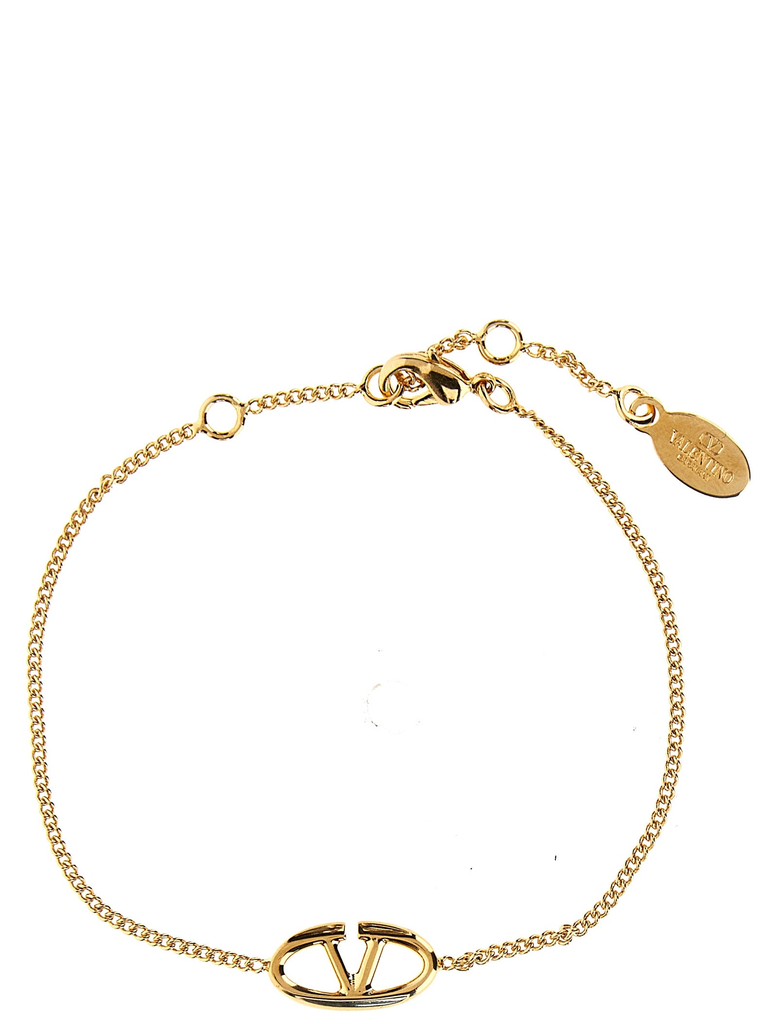 Gold metal bracelet with 'VLogo The Bold Edition' charm.