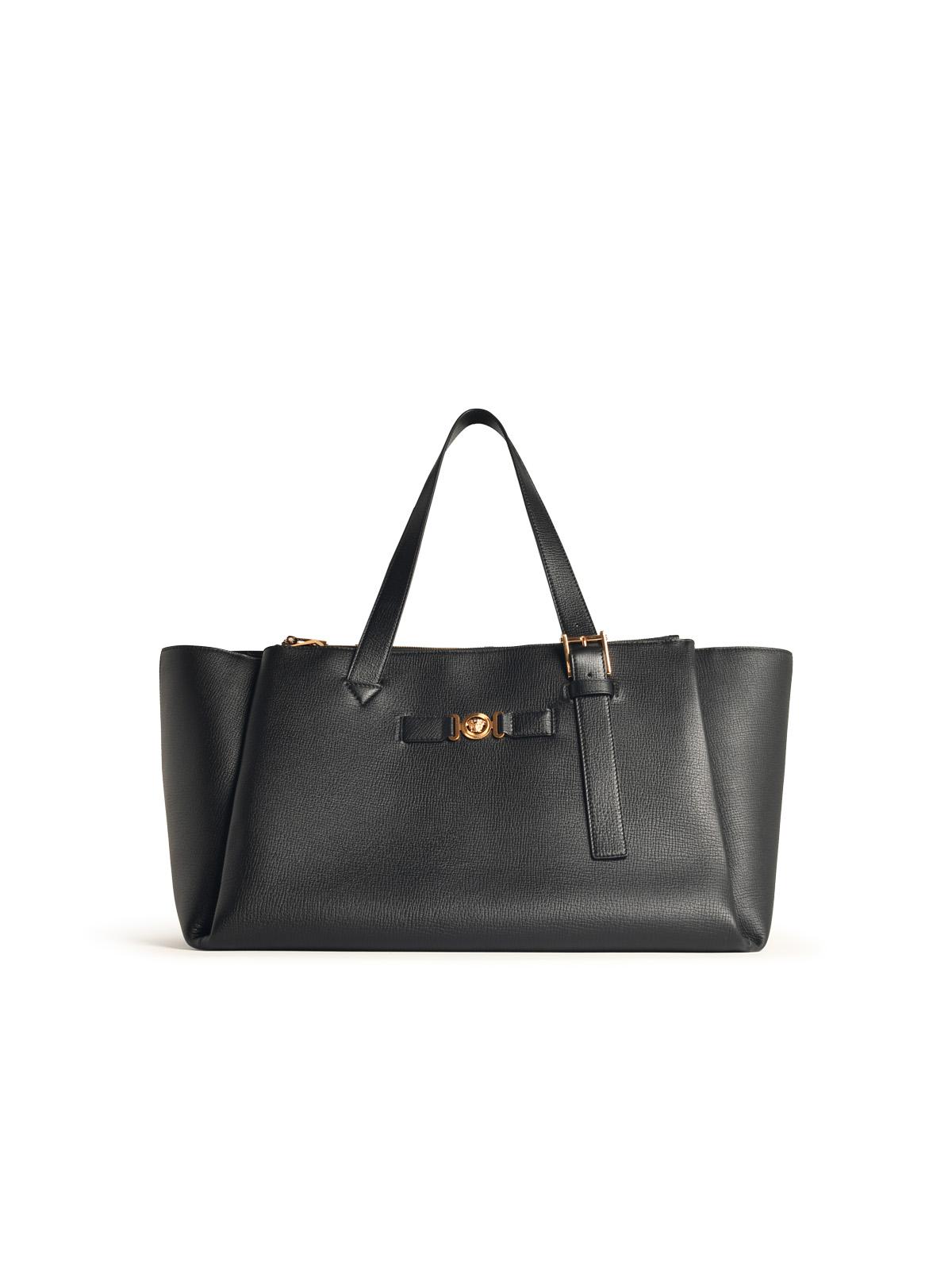 Dobbelt justerbart læderhåndtag, spænde, top lynlås lukning, sidelommer med lynlås, logo medaljon, enkelt rum, inde i lynlås \ n48 x 31 x 31 cm