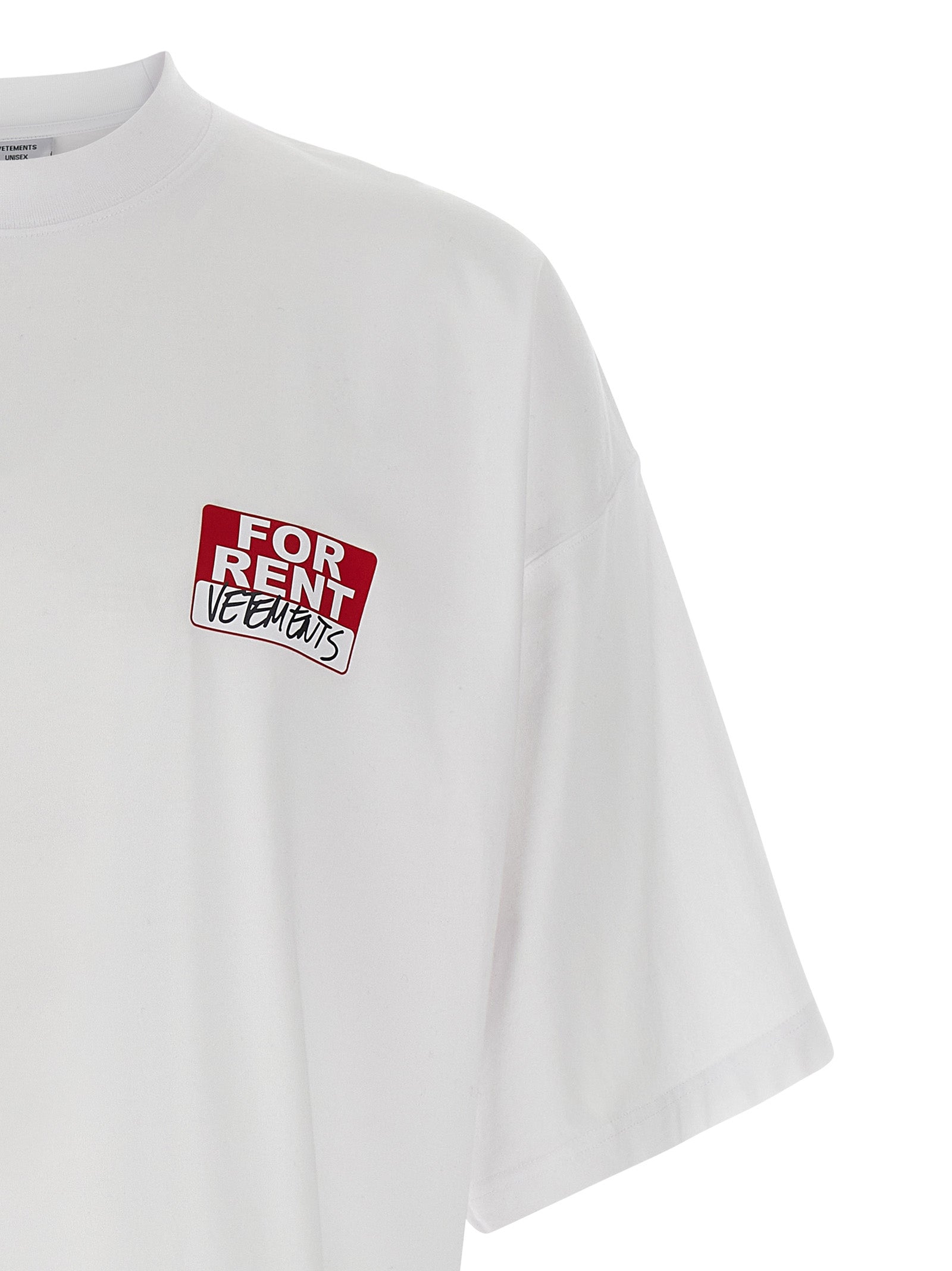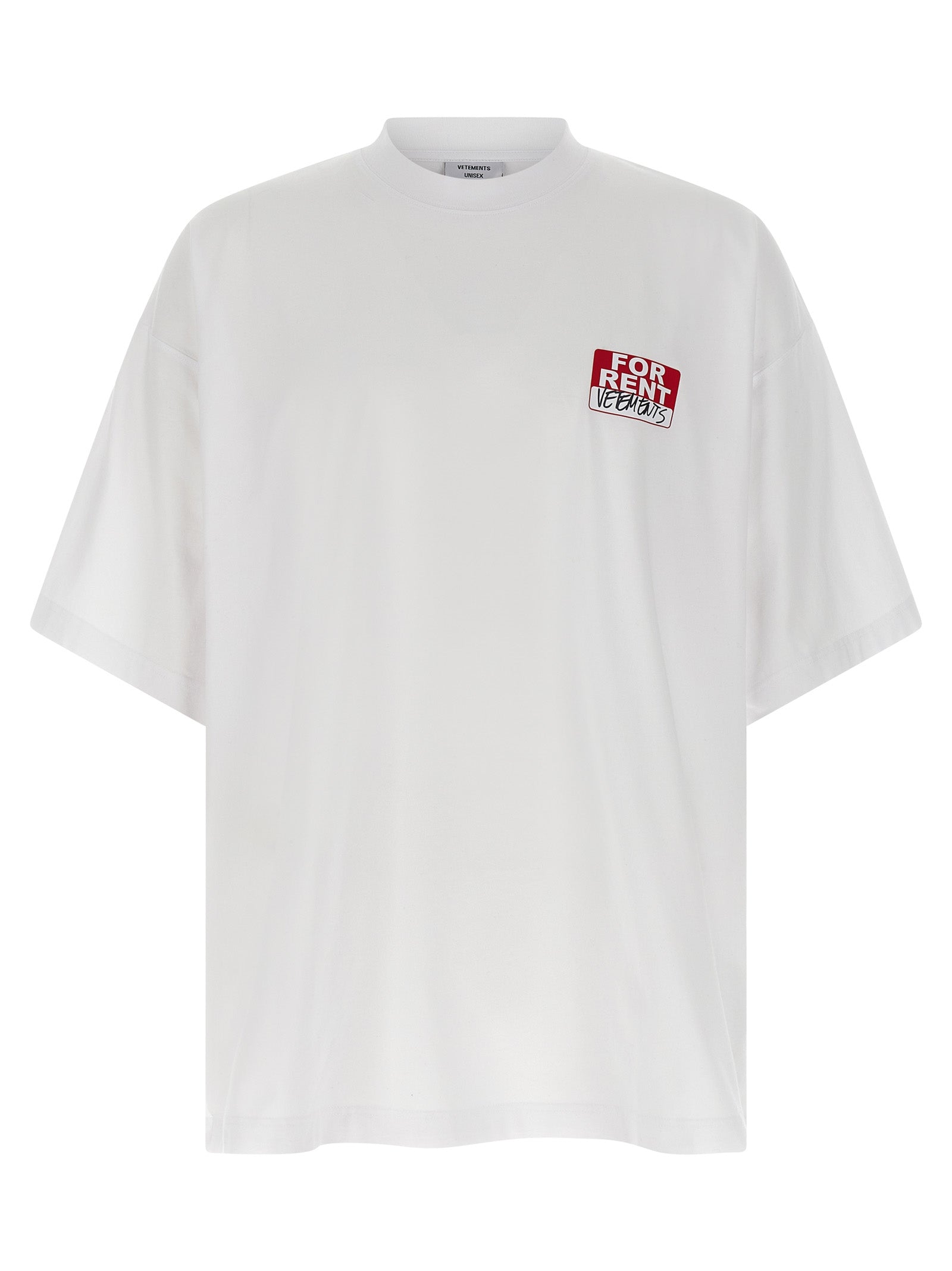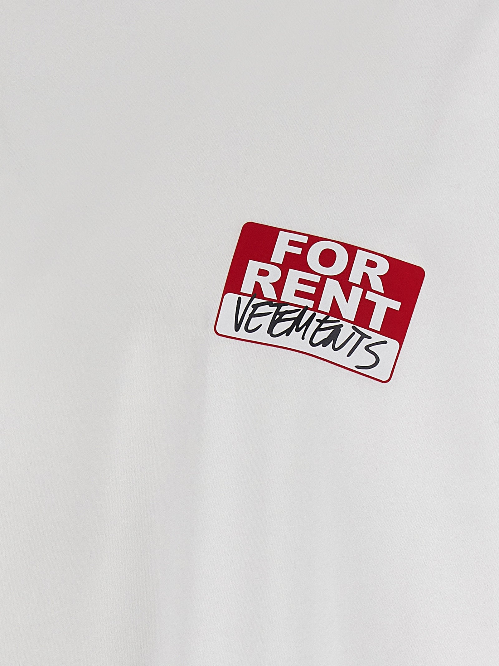 'For rent' cotton, crewneck t-shirt with front and back print, oversized fit, short sleeves.