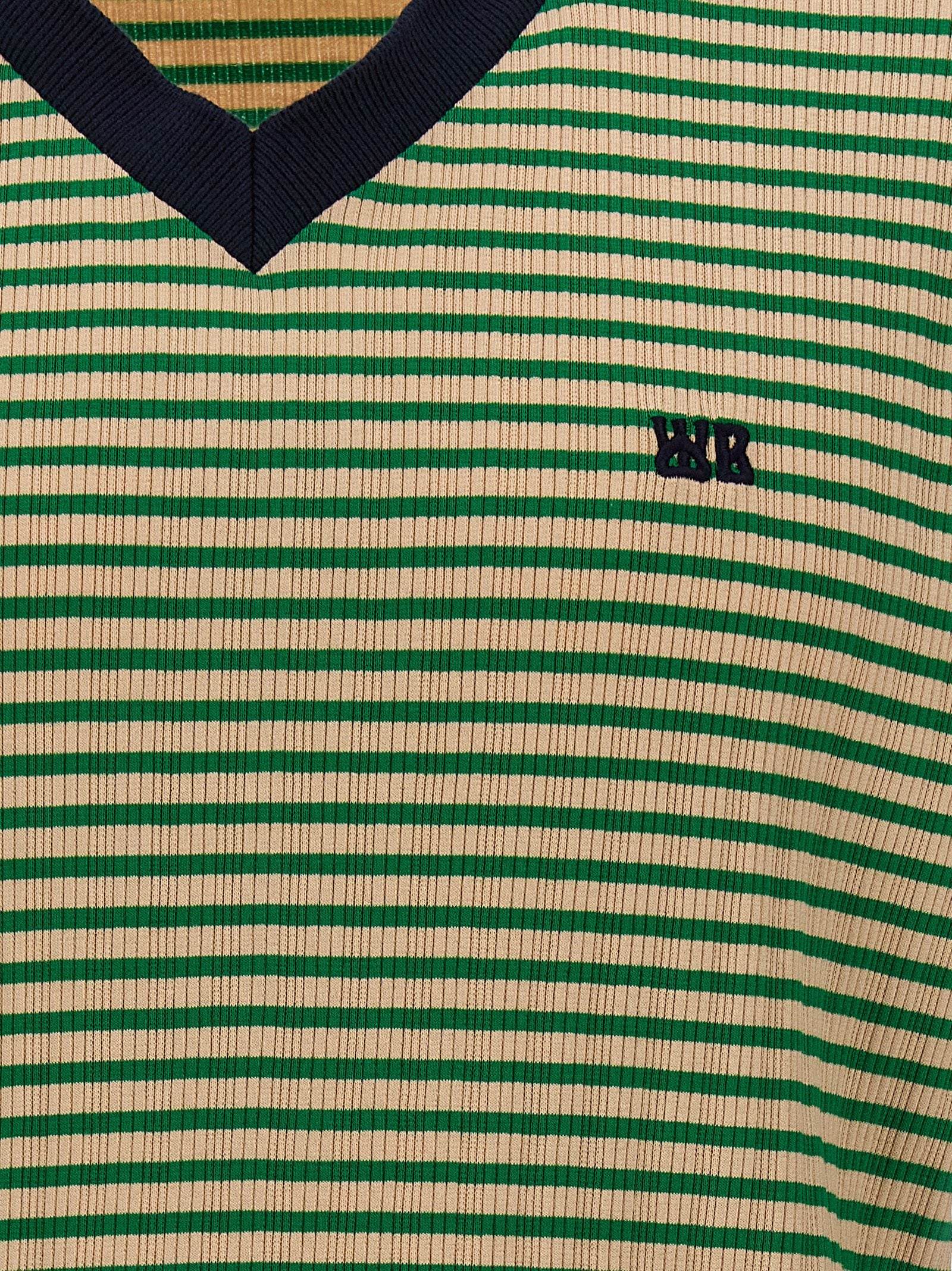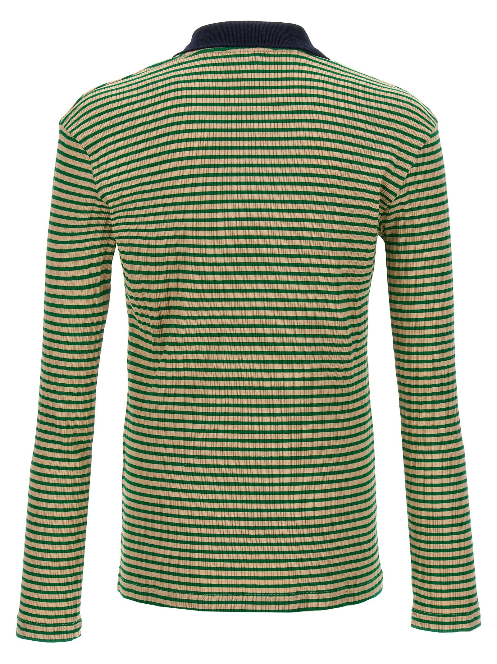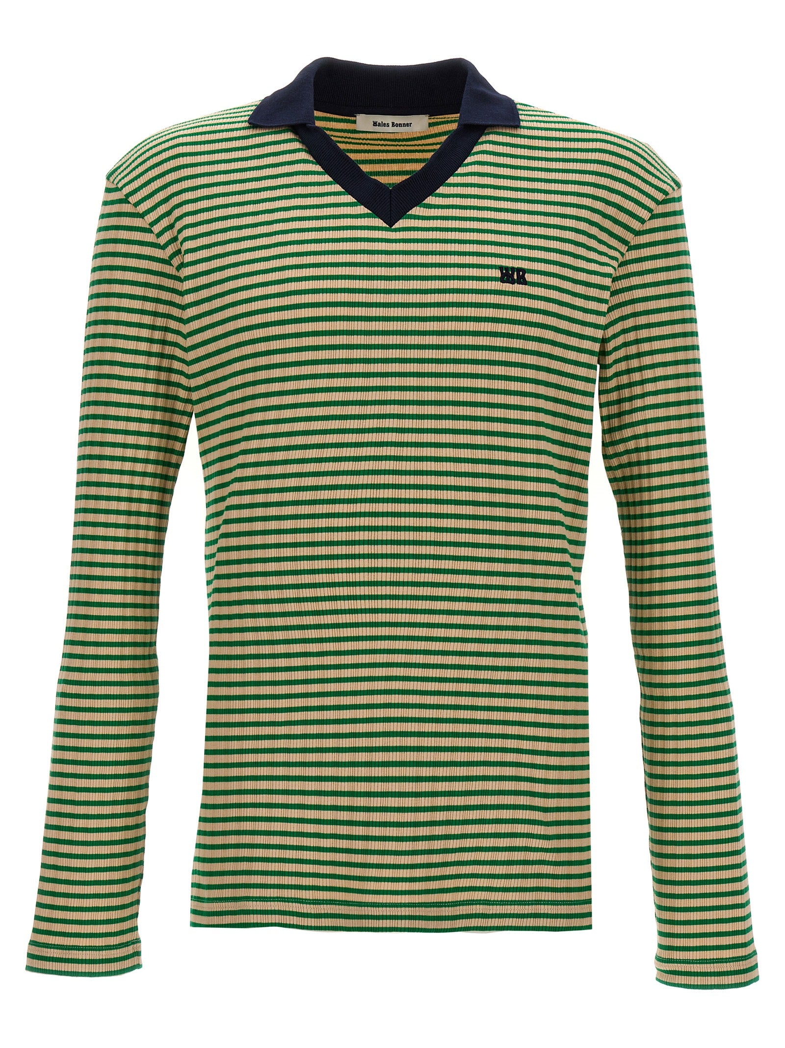 'Sonic' ribbet bomuldspolo-shirt med vandret stribemønster, lange ærmer, kontrast V-hals med krave, logo på brystet.