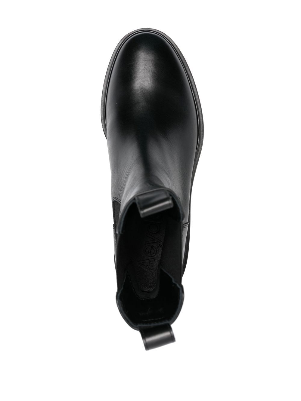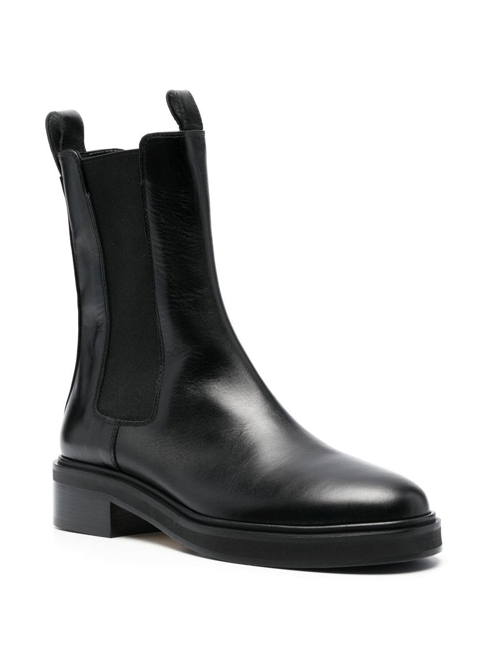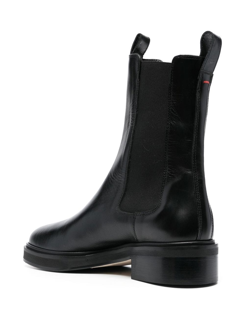 Simone tall leather boots from Aeyde featuring jet black, calf leather, almond toe, elasticated side panels, double pull-tab at the opening and stacked sole.