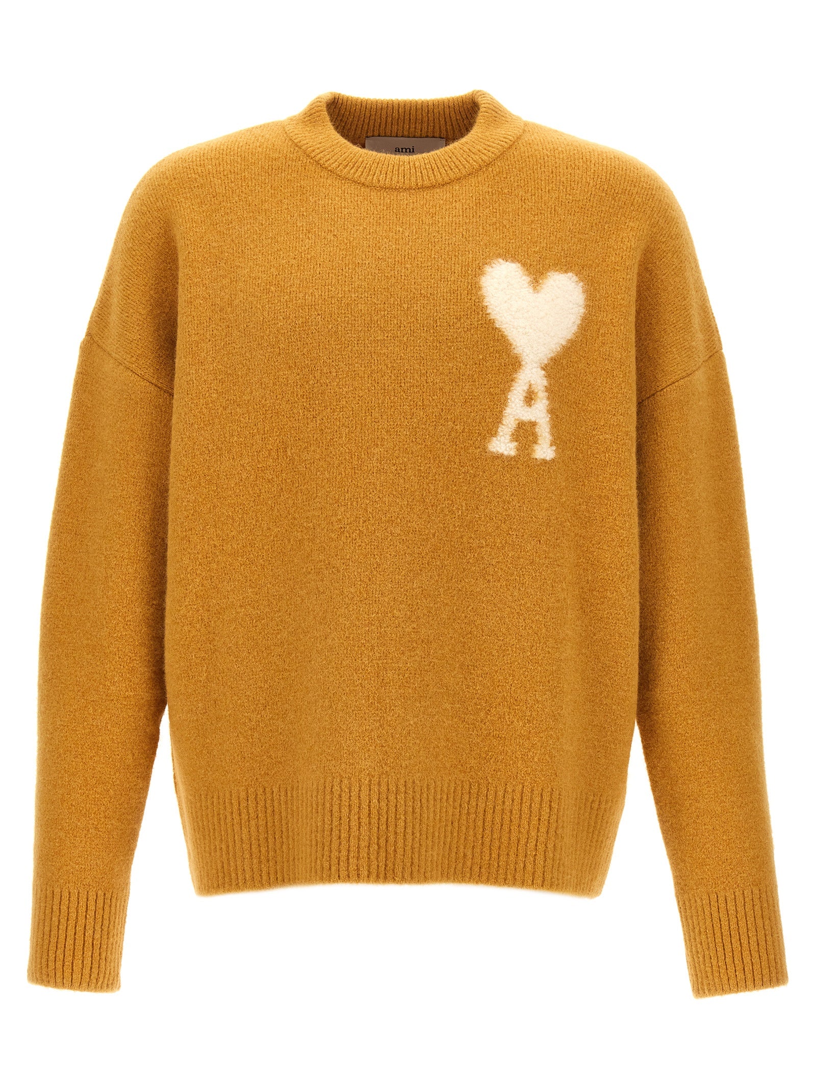 'Ami de Coeur' Pullover in Alpaca-Blend mit vorderem Logo intarsia, Crew-Hals, lange Manschettenärmel.