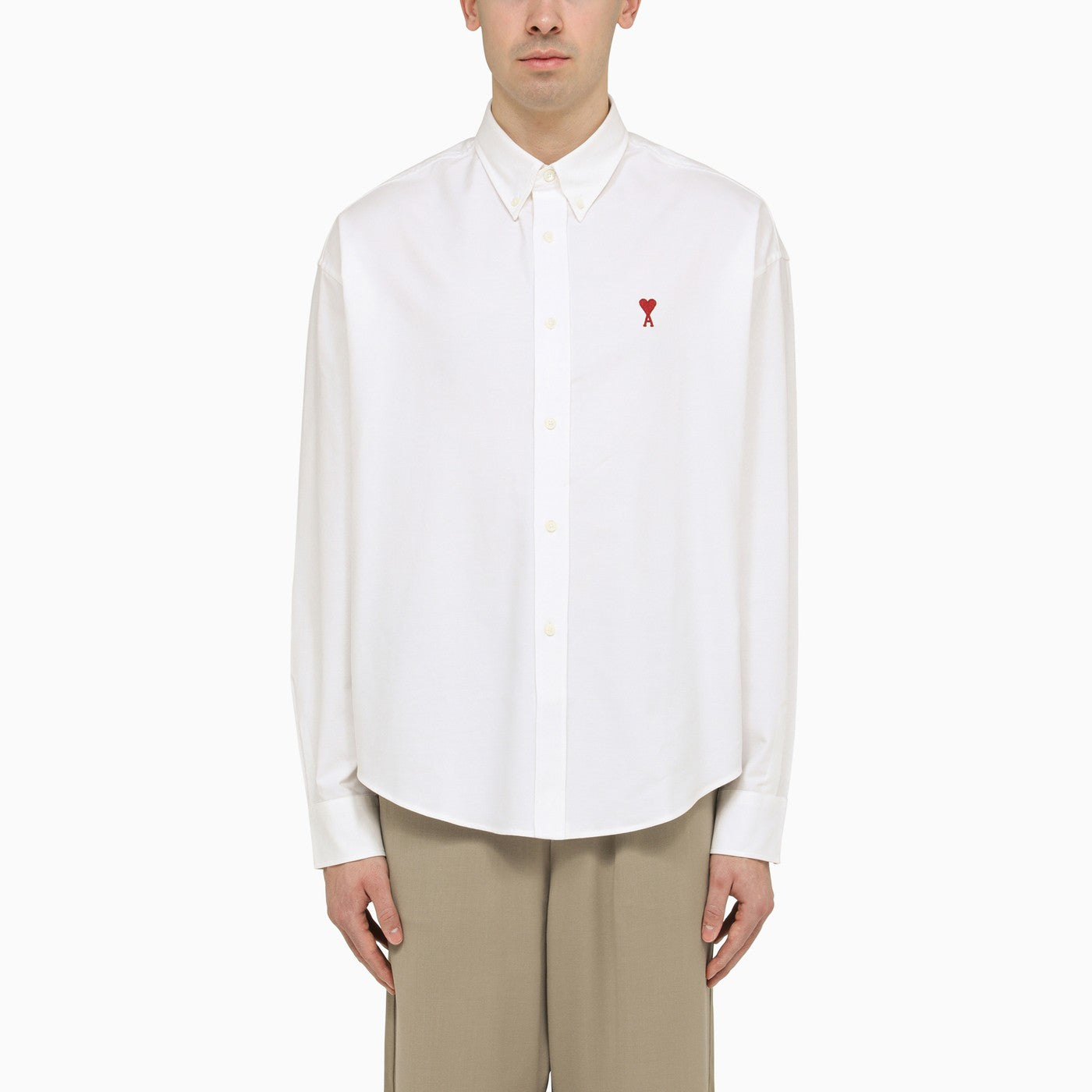 Hemd von Ami Paris in weißer Baumwolle mit rotem Ami de Coeur -Stickerei auf der Brust, klassisches Kragen, Vorderknopfbefestigung, langen Ärmeln, geknöpften Manschetten und gebogenem Saum.