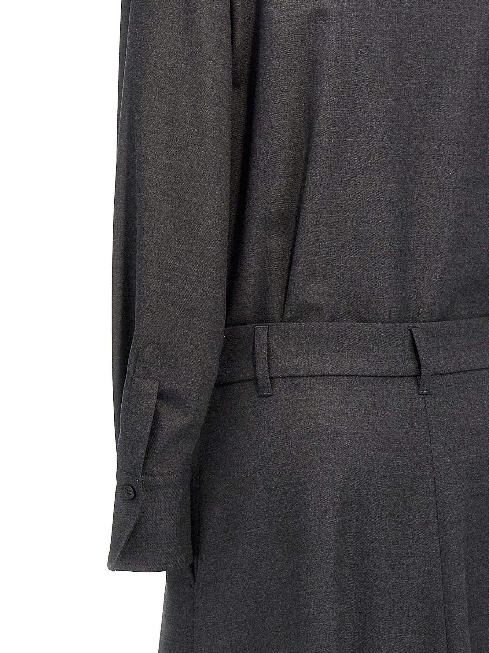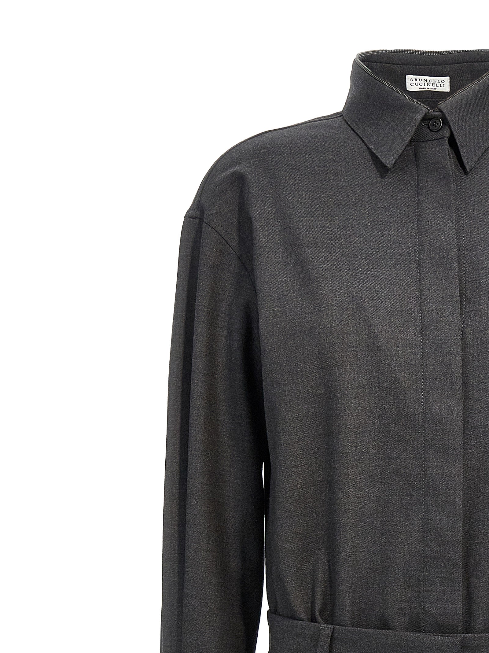 Stretch -Wollhemd -Kleid, Hemdoberteil mit Vordertasche, Knopfverschluss, lange Ärmel mit Manschetten und Rock mit Reißverschluss, Haken und Knopfverschluss, Taschen.