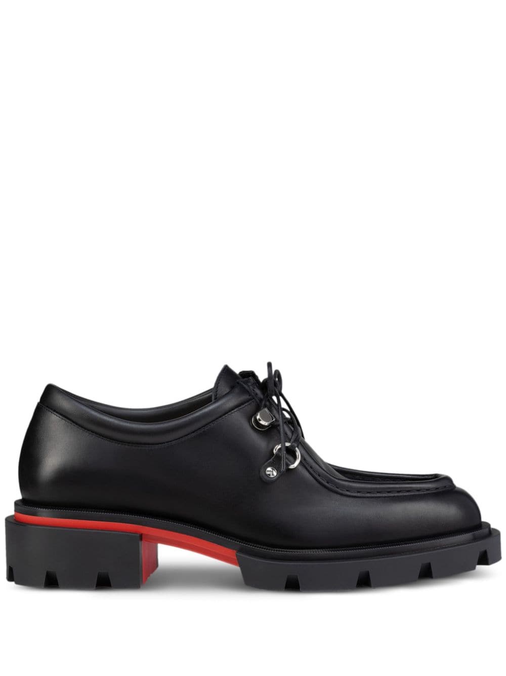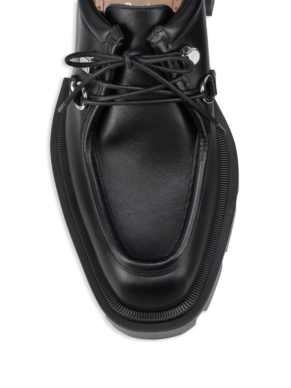 black calf leather round toe silver-tone hardware suede lining branded insole rubber lug sole contrasting debossed logo at the sole