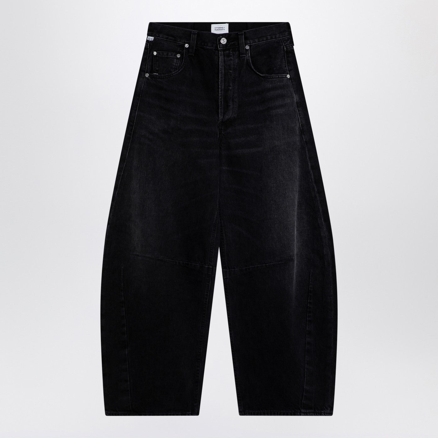 Schwarz regenerierte Baumwoll -Jeans von Citizen of Humanity mit einem breiten Bein, einem vorderen Reißverschluss und Knopfbefestigungen, Gürtelschlaufen, einer hohen Taille, einem klassischen Fünf -Taschen -Design, einem Logo -Patch auf der Rückseite und einer kleinen Logo -Plaque auf der Seite.