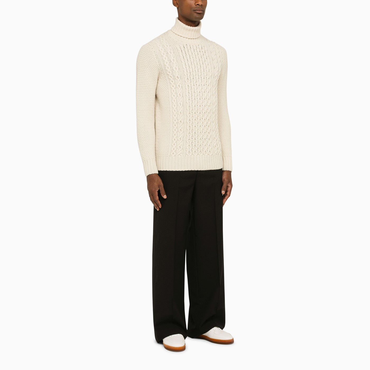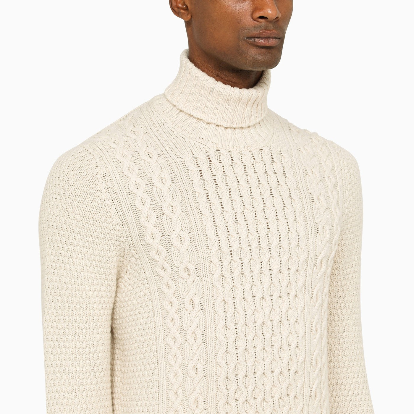 Drumhors Rollkragenpullover in milchfarbener Wolle mit langen Ärmeln und einer geflochtenen Frontplatte.
