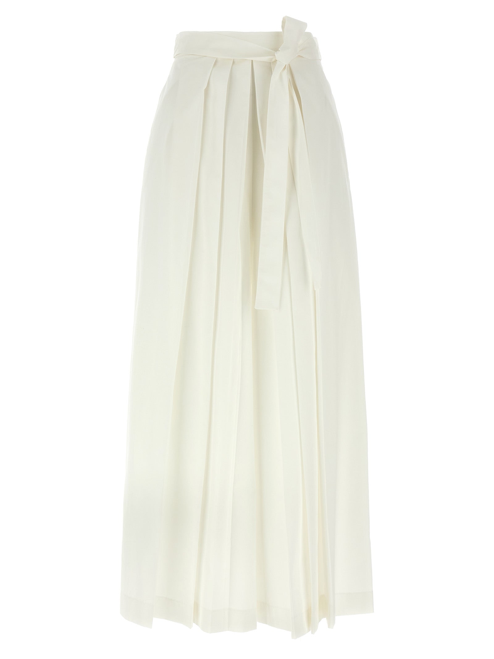 Baumwollhosen, breite Passform, vordere, gedehnte Falten, Seitenschleife und Hakenverschluss, geknoteter Gürtel an der Taille.