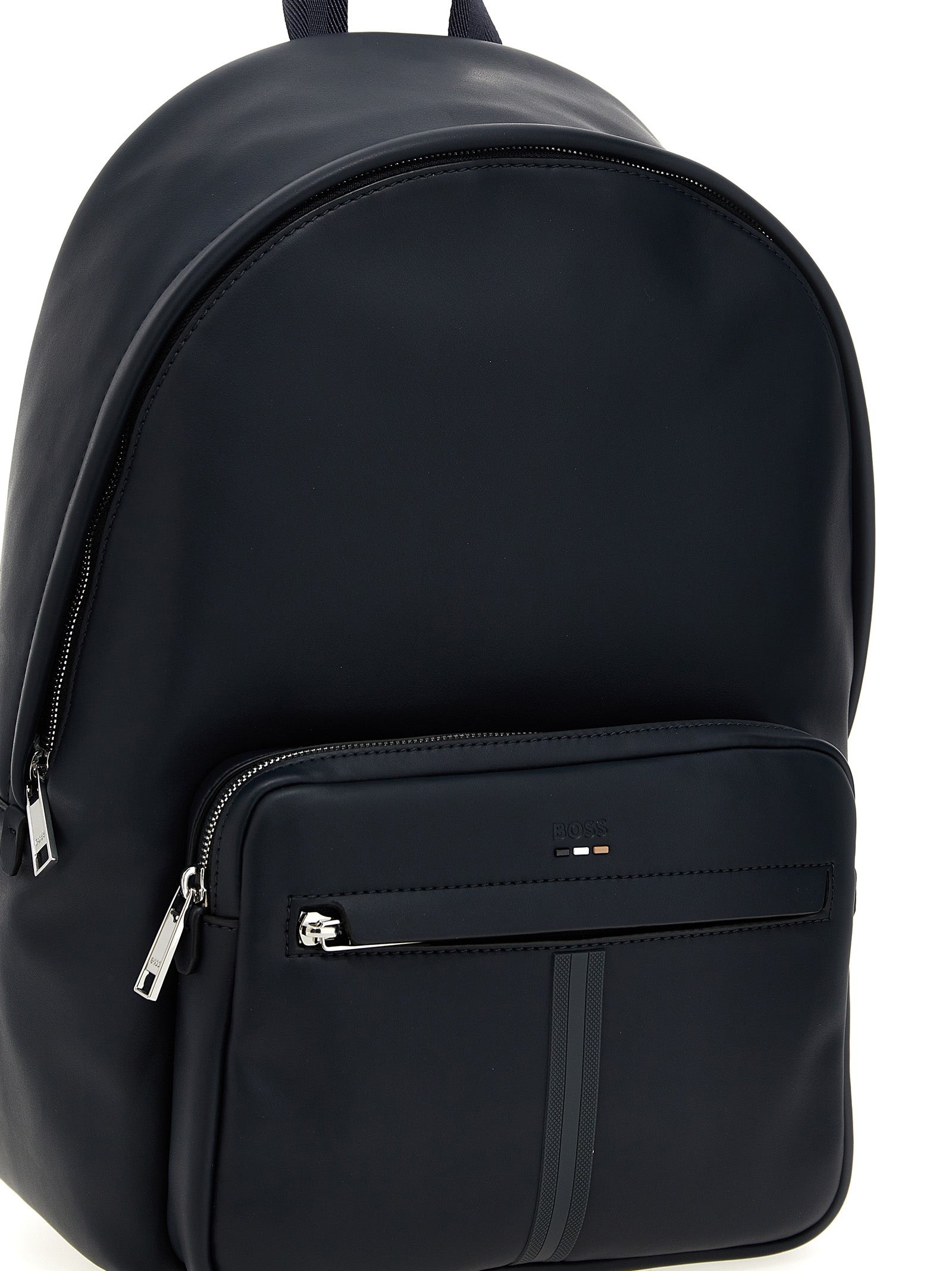 'Ray-S'Rucksack in Leder-Effekt-Stoff mit vorderem Logo, Reißverschluss, oberer Griff, vordere Reißverschlusspocke, verstellbare Schultergurte, gepolsterte Rückenlehne.