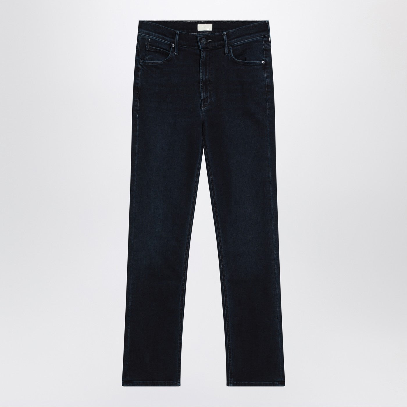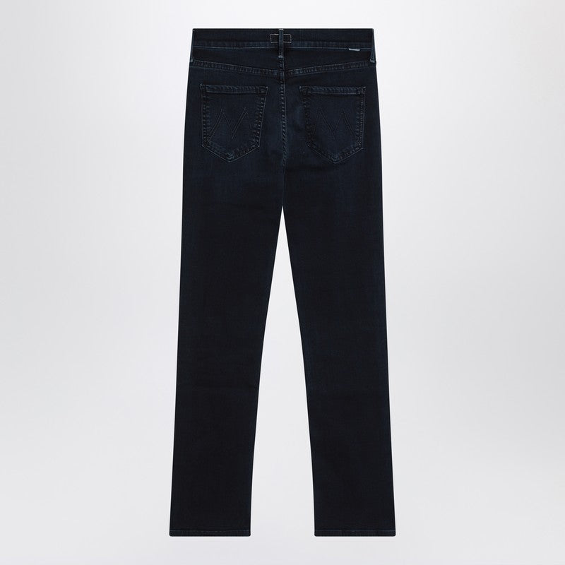 Gerade Jeans von Mutter in dunkelblauem Baumwoll -Denim mit einem leicht verblassten Effekt, der durch einen Frontschließ mit Reißverschluss und Knopf, Gürtelschlaufen, fünf klassischen Taschen, einem kleinen Logo -Patch auf der Rückseite und einem gestickten Logo auf den Back -Taschen gekennzeichnet ist.