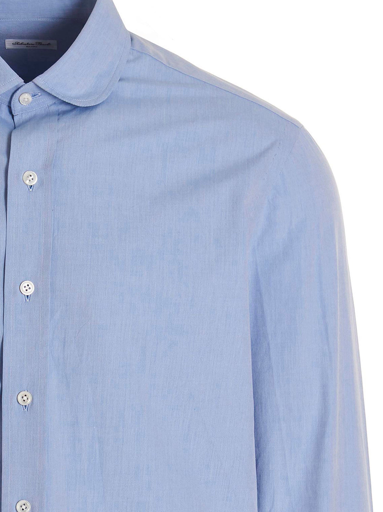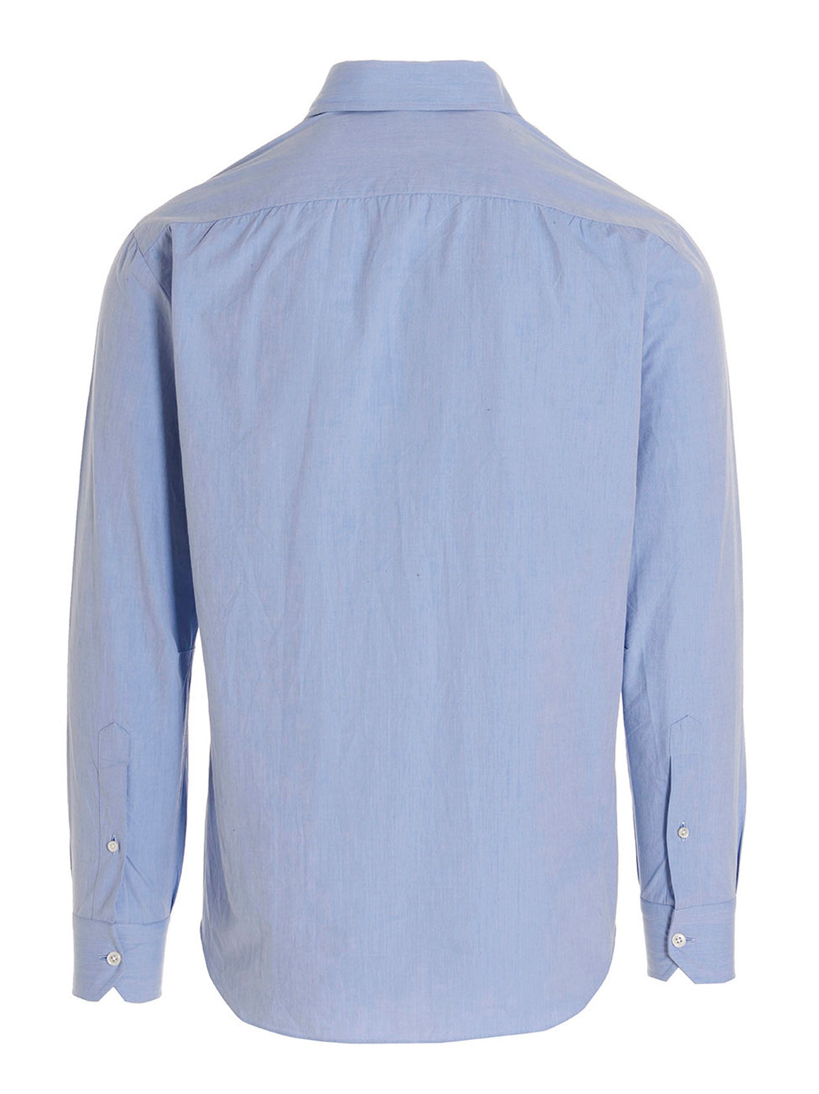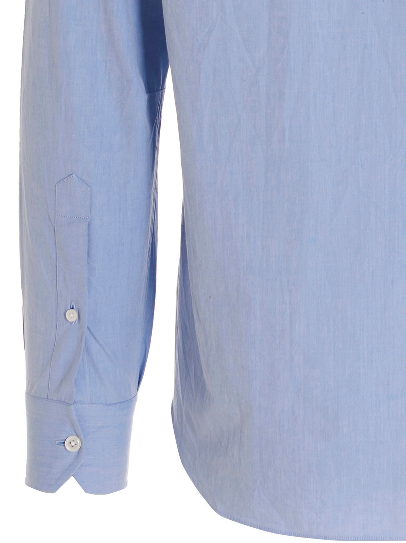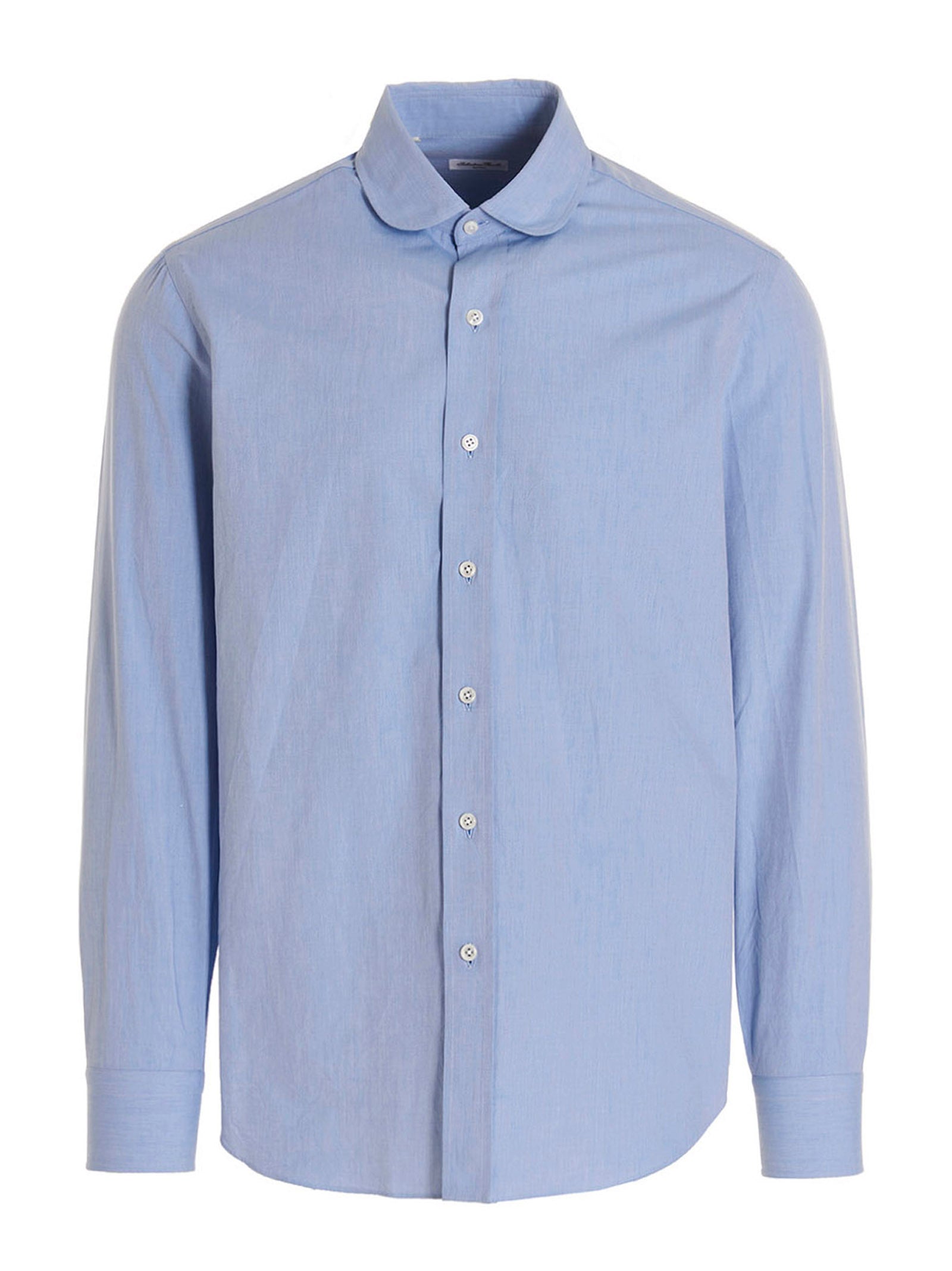 Baumwollhemd mit abgerundetem Kragen, einem Knopfverschluss und langen, gefesselten Ärmeln.