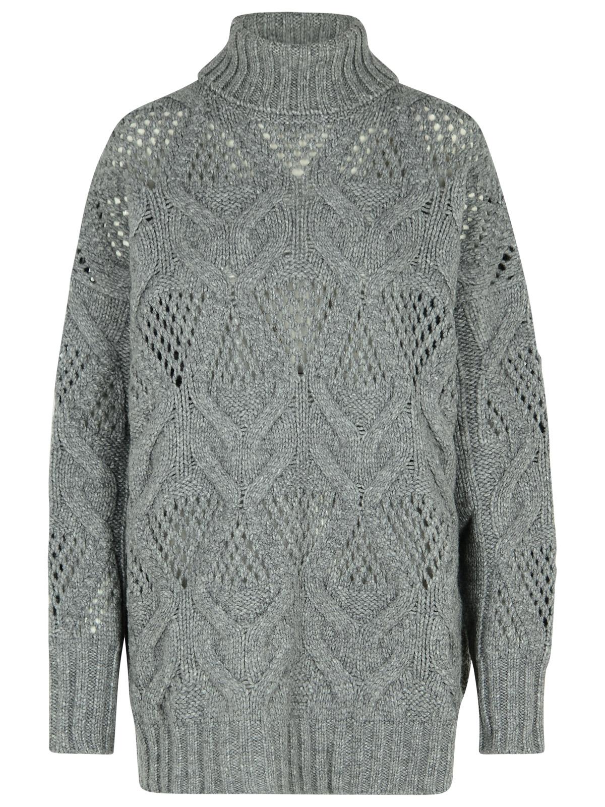 Breit gestrickt mit geflochtenem Muster, geripptem Hals, geripptem Saum und Manschetten