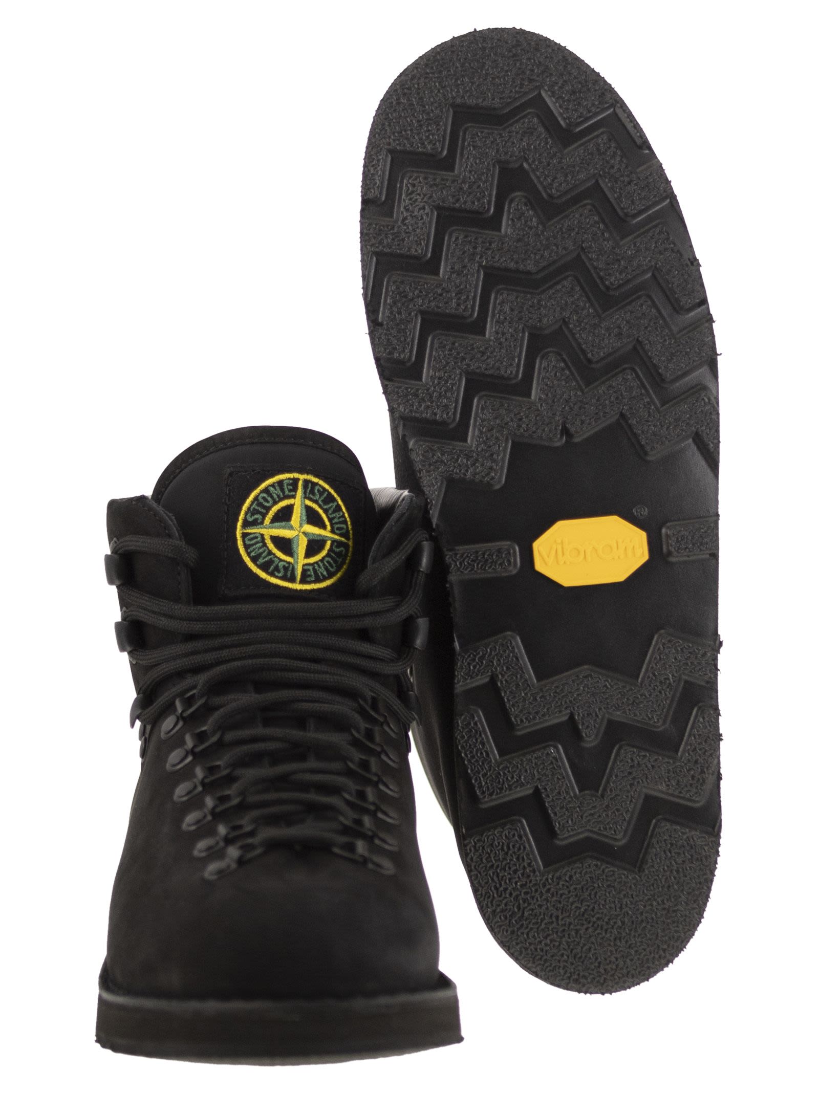 Nubuck Leder-Schnürstiefel mit einer innovativen einteiligen Konstruktion, die einen größeren Komfort bietet und mit einer hochschockabsorbierenden Gummi-Sohle ausgestattet ist. Innovative einteilige Konstruktion für zusätzlichen Komfort für den Träger. Metallschleifen und Haken mit Nylonkabelschnürung. Gepolsterte Zunge in schwarzer Steininsel Nylonmetall mit rohen Kanten, mit Stone Island Wind Rose Flecken im Wollstickt. Wildlederzunge auf der Ferse mit Stone Island -Schriftzahl. Vibram® Foam -Gummi -Verbindungssohle, die Leichtigkeit und hohe Stoßdämpfung mit ausgezeichnetem Griff und Haltbarkeit in der Stadt bietet. .
