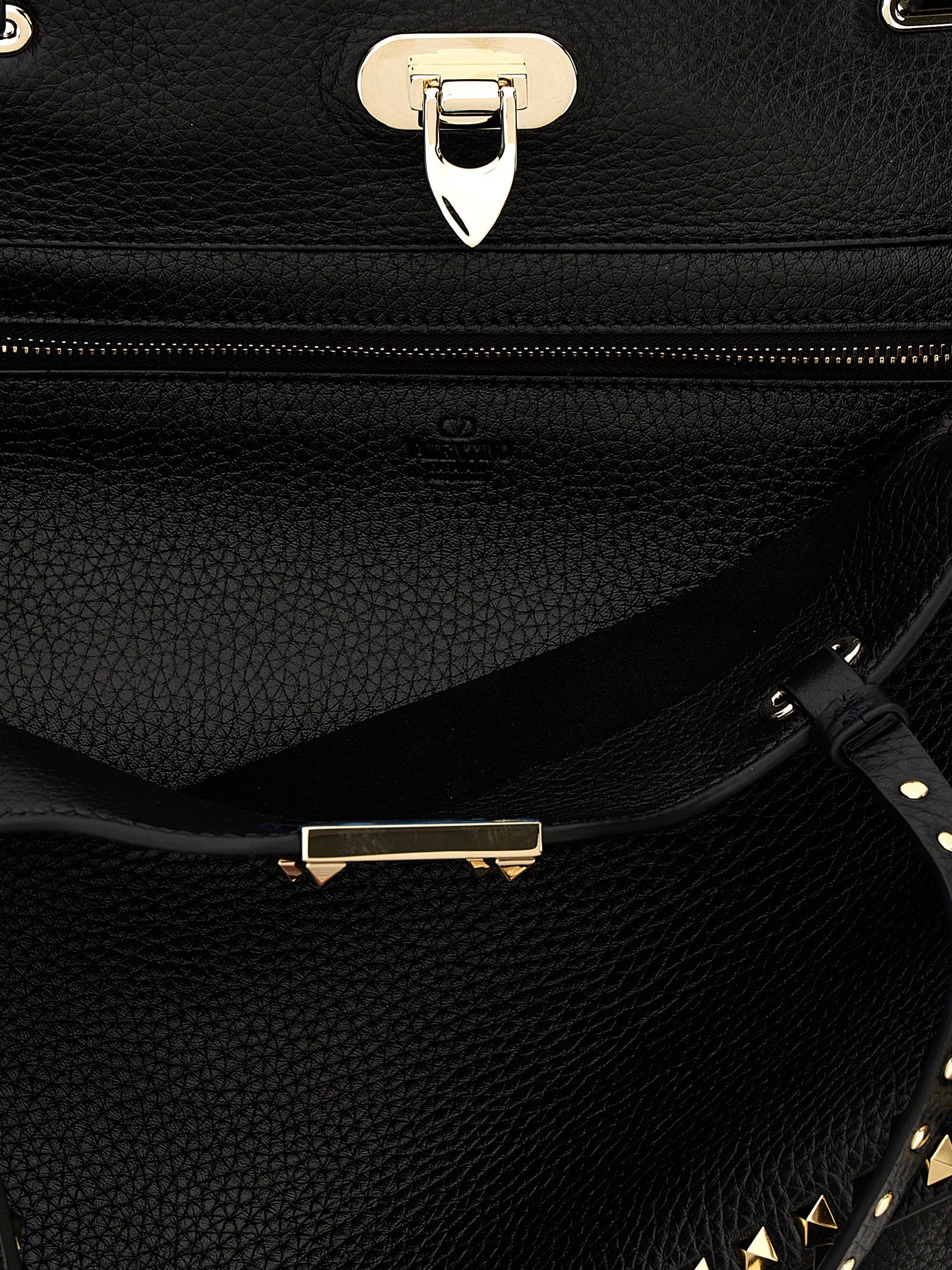 'Rockstud Medium' Leder -Einkaufstasche mit Bolzenanwendung, Doppelgriff, Innenpockt, abnehmbares Schultergurt, Metallhakenverschluss.
