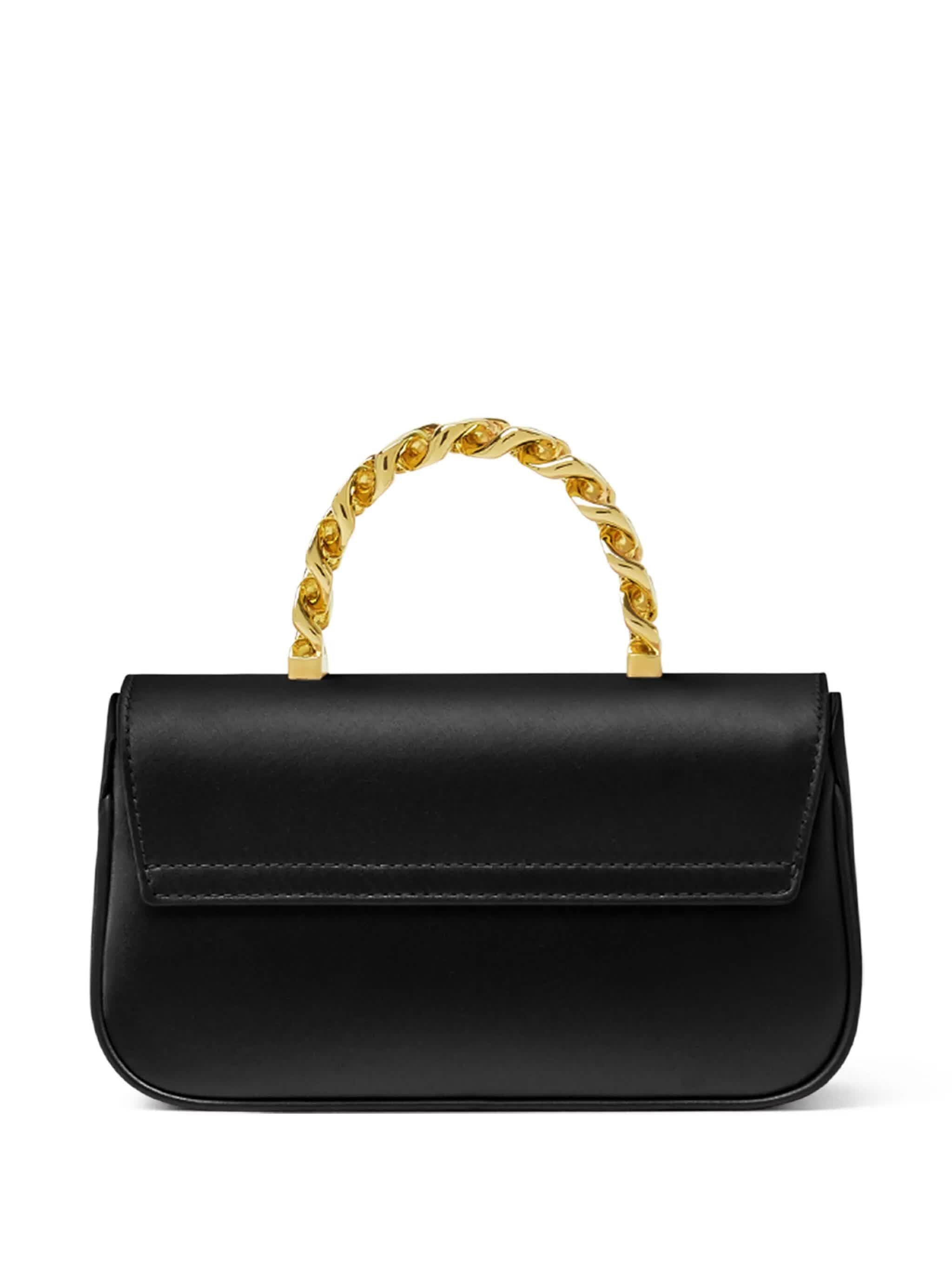 Versace präsentiert diesen Mini -Satinbeutel mit weichem Leder -Innenraum und der legendären La Medusa -Hardware.