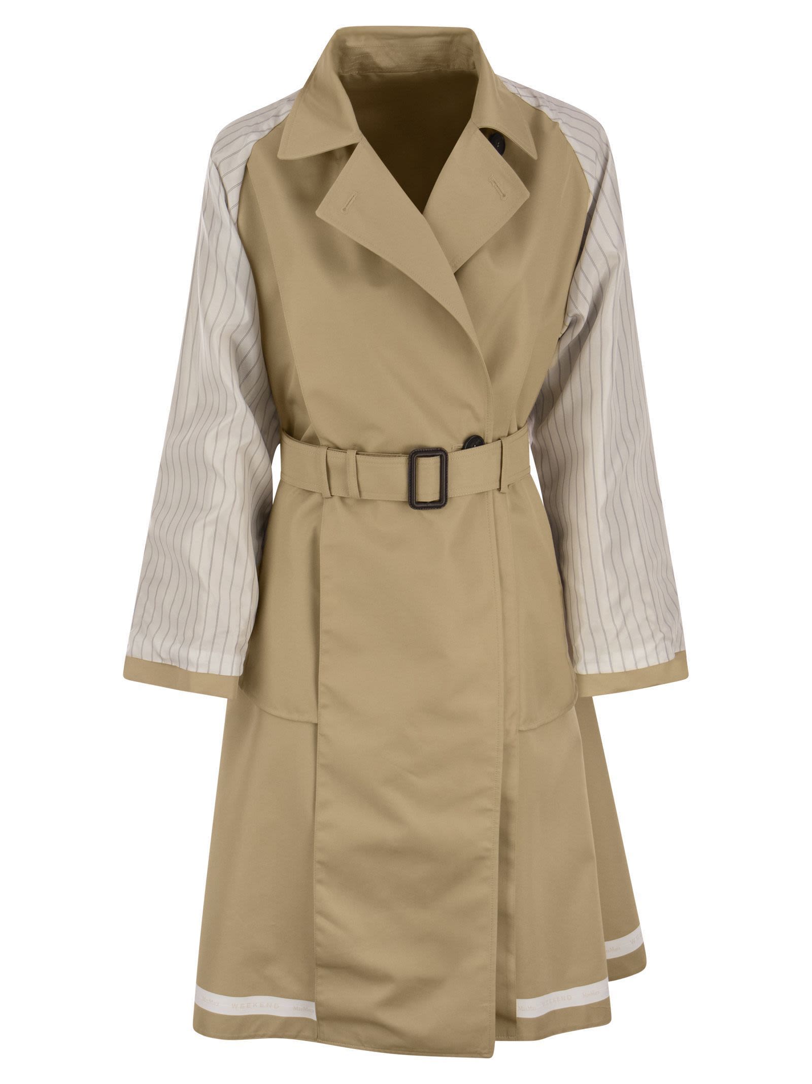 Langes Trenchcoat in tropfensicherer Baumwollmischung Gabardine. It verfügt über einen Reverskragen, eine doppelte Knopfplacket, einen Umhang und eine hintere Entlüftung, Seitentaschen, ein verstellbarer Bund und Manschetten mit einstellbaren Trägern. - Reversible - Designer ID für regelmäßige Passform: 2415021021600 024