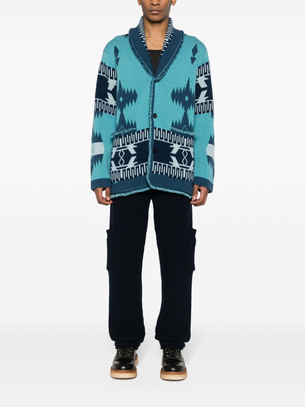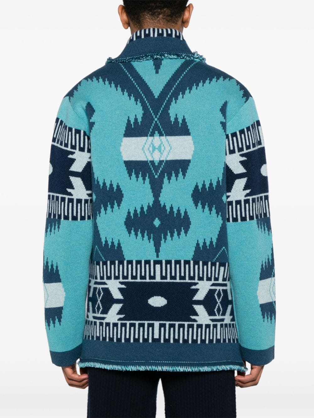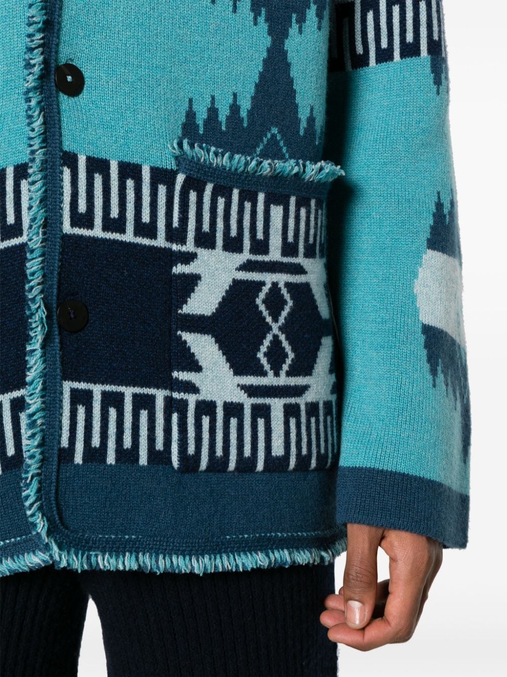 Tiffany Blue/Multicolour Cashmere Musticed Intarsia Strick-Randdetails der Schal-Refer