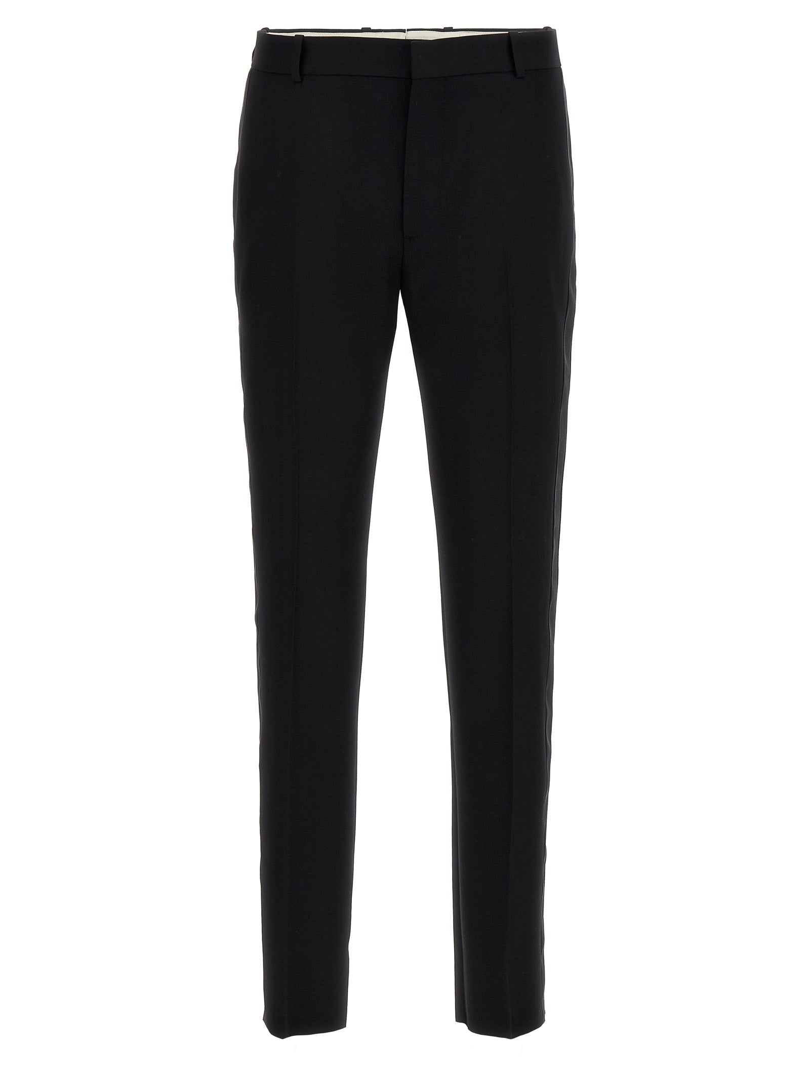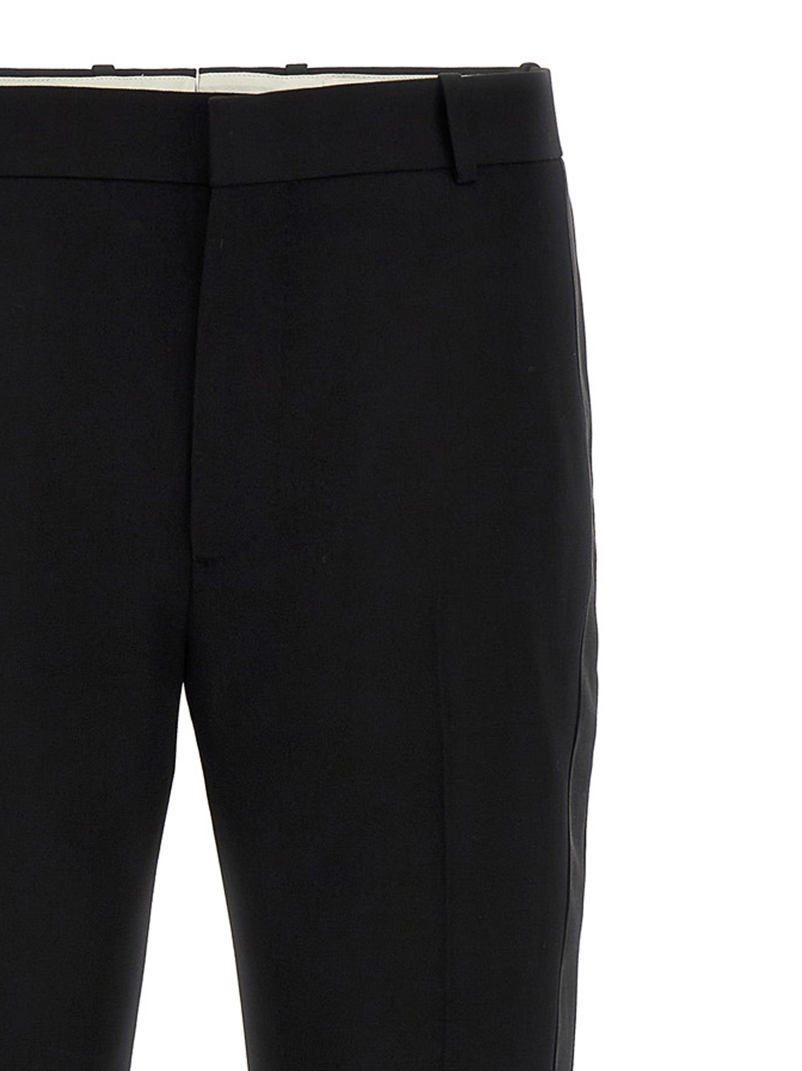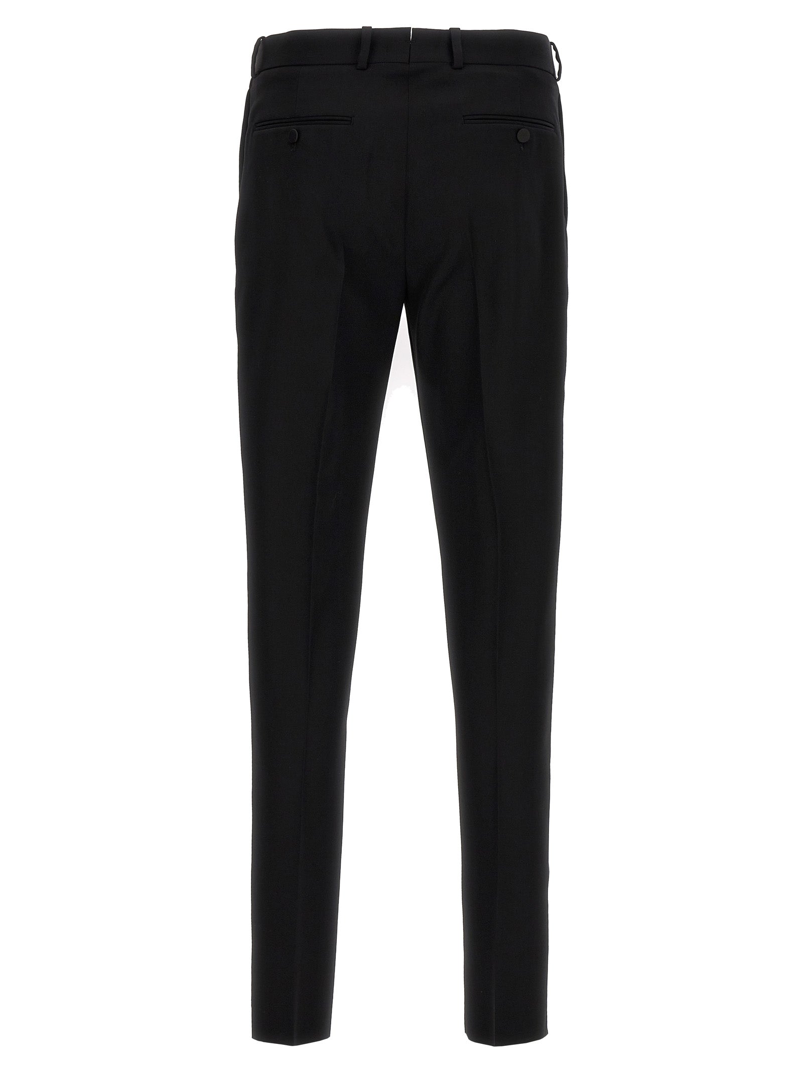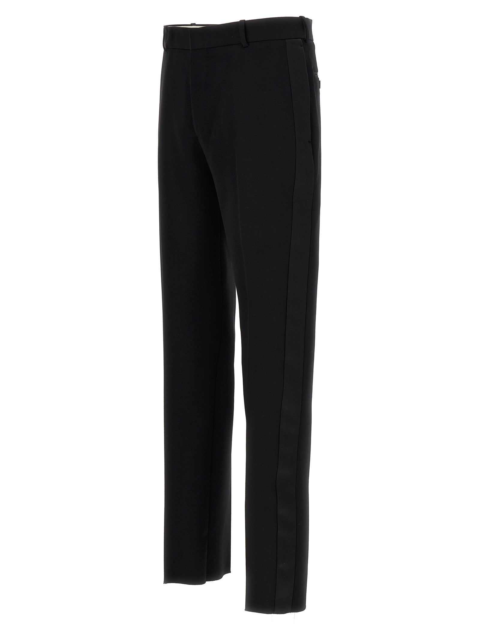 Getreide de Poudre Abendtuxedo-Hosen mit geratenen Seitenbändern, Taschen und einem Reißverschluss-Hakenverschluss.