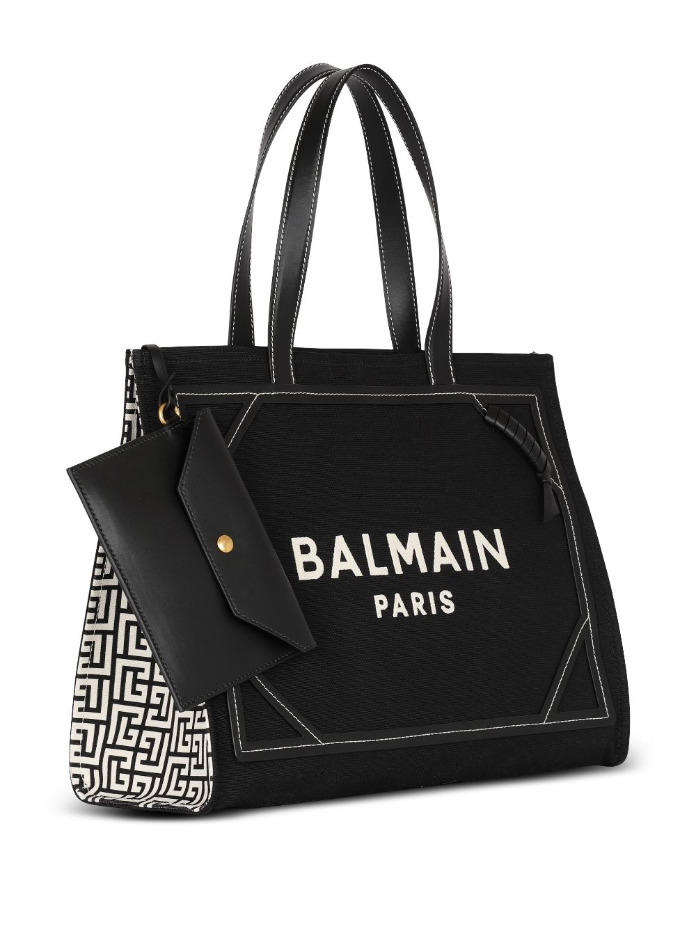 Balmain B Armee mittelgroße Leinwand und Ledertasche
