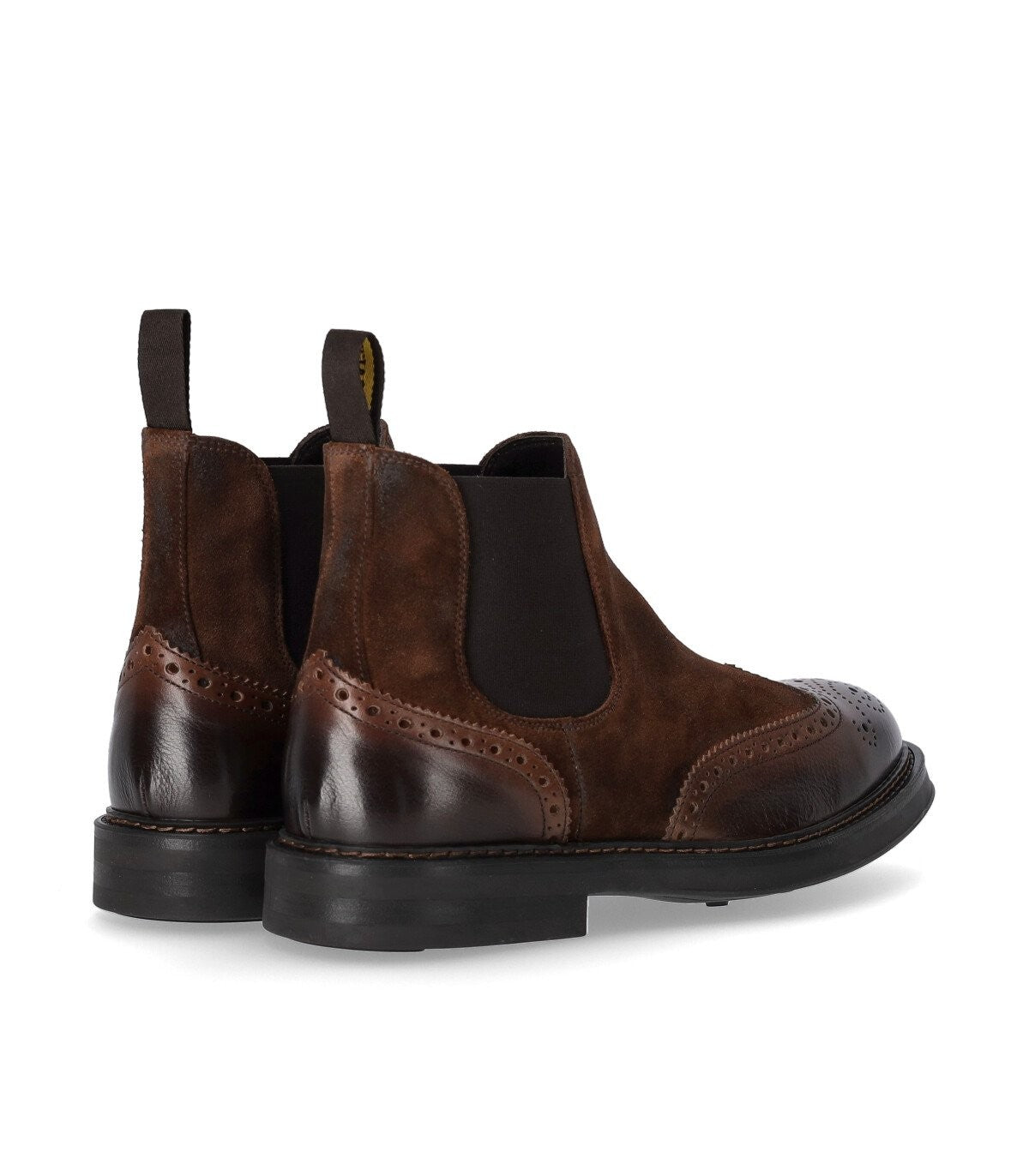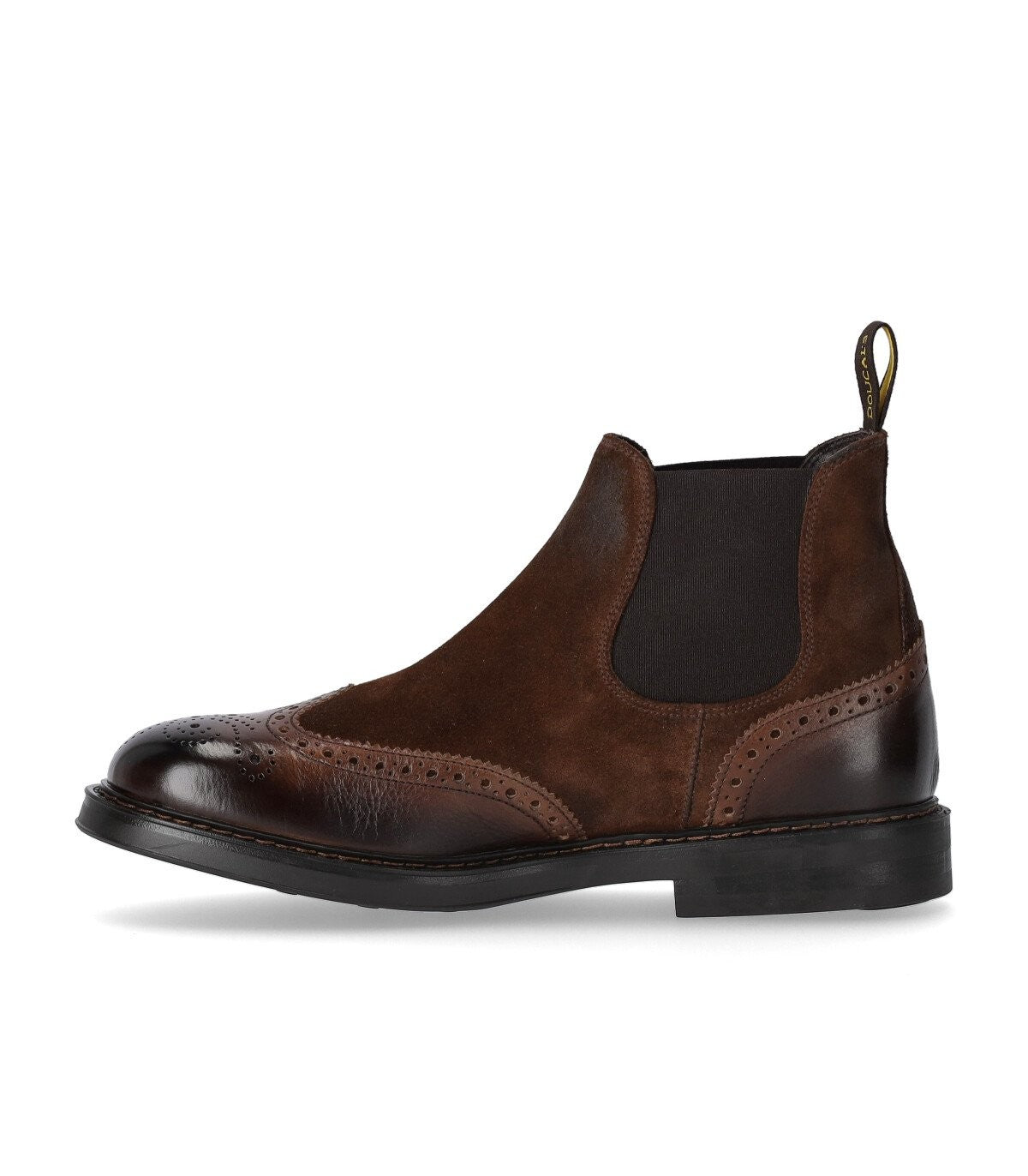 Doucal 's Denver Chelsea -Stiefel aus braunem Wildleder mit leicht gealtertem Effekt mit Zeh und Ferse in gebürstetem Leder mit Brogues. Weiche Leder -Innen- und Innensohle, Gummibänder an den Seiten und die Rückzunge mit Logo. Gummi -Sohle, Höhe 3 cm.
