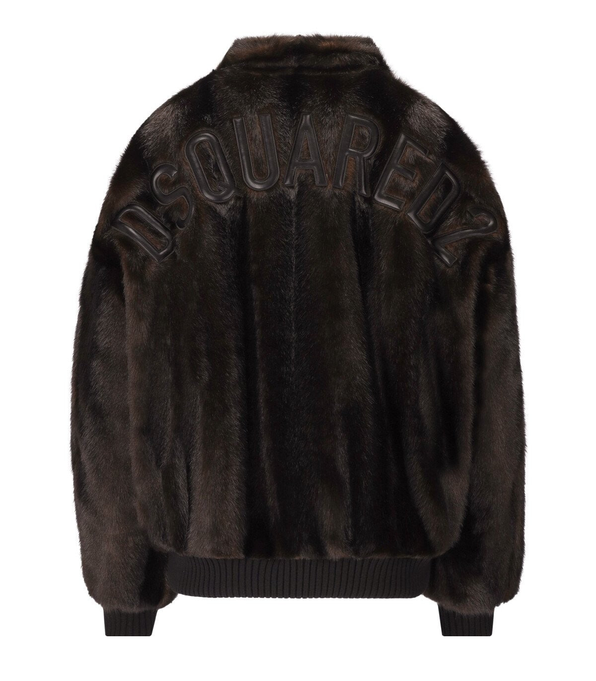 DSquared2 Bomber Jacke aus braunem Kunstfell, dekoriert mit Maxi -Logo auf der Rückseite. Kundtaschen vorne, Manschetten und Saum in geripptem Stoff. Double Slider Reißverschluss. Übergroße Passform. Zusammensetzung: 82% Modacrylic, 18% Polyester. Auskleidung: 100% Polyester.