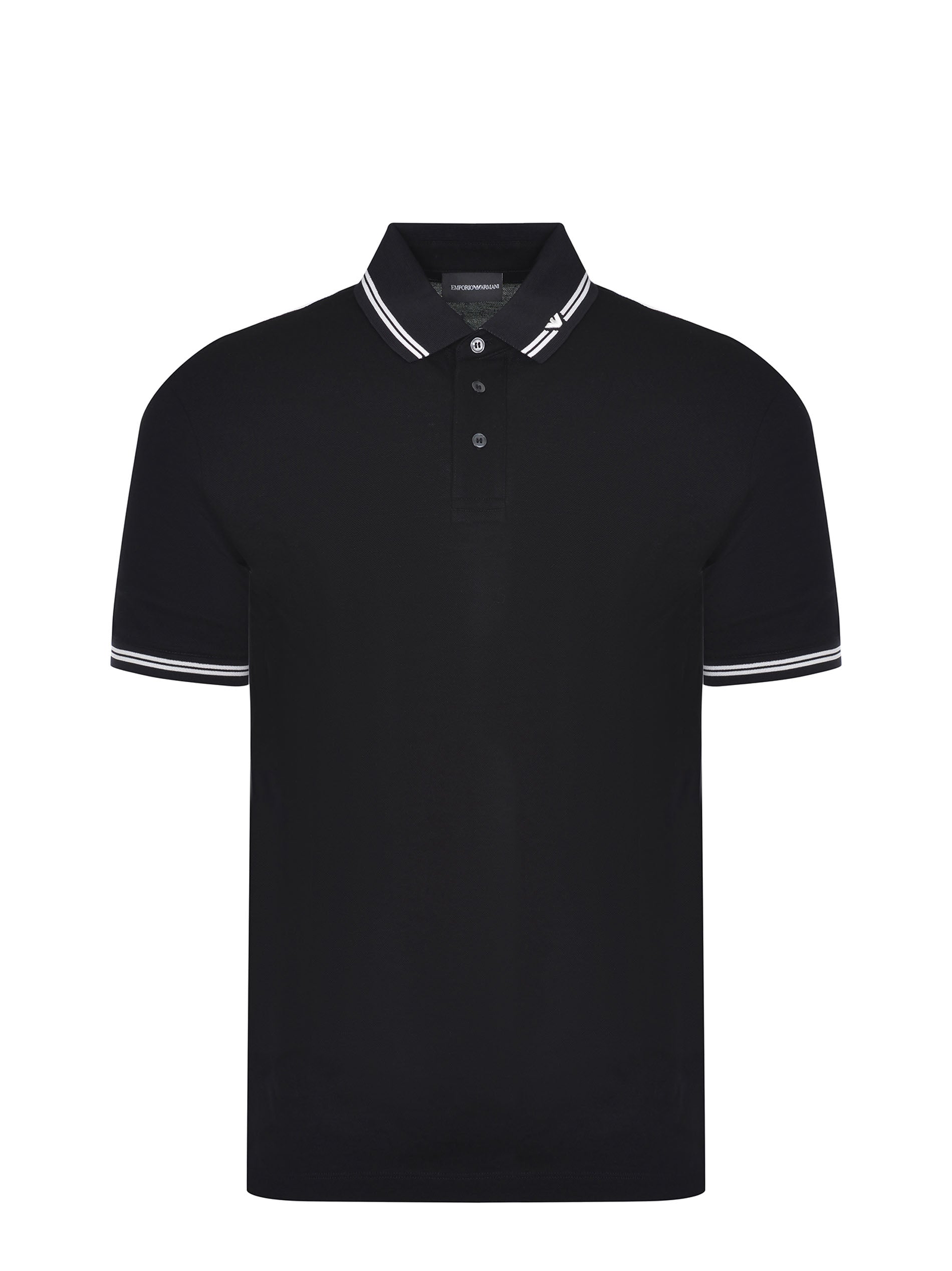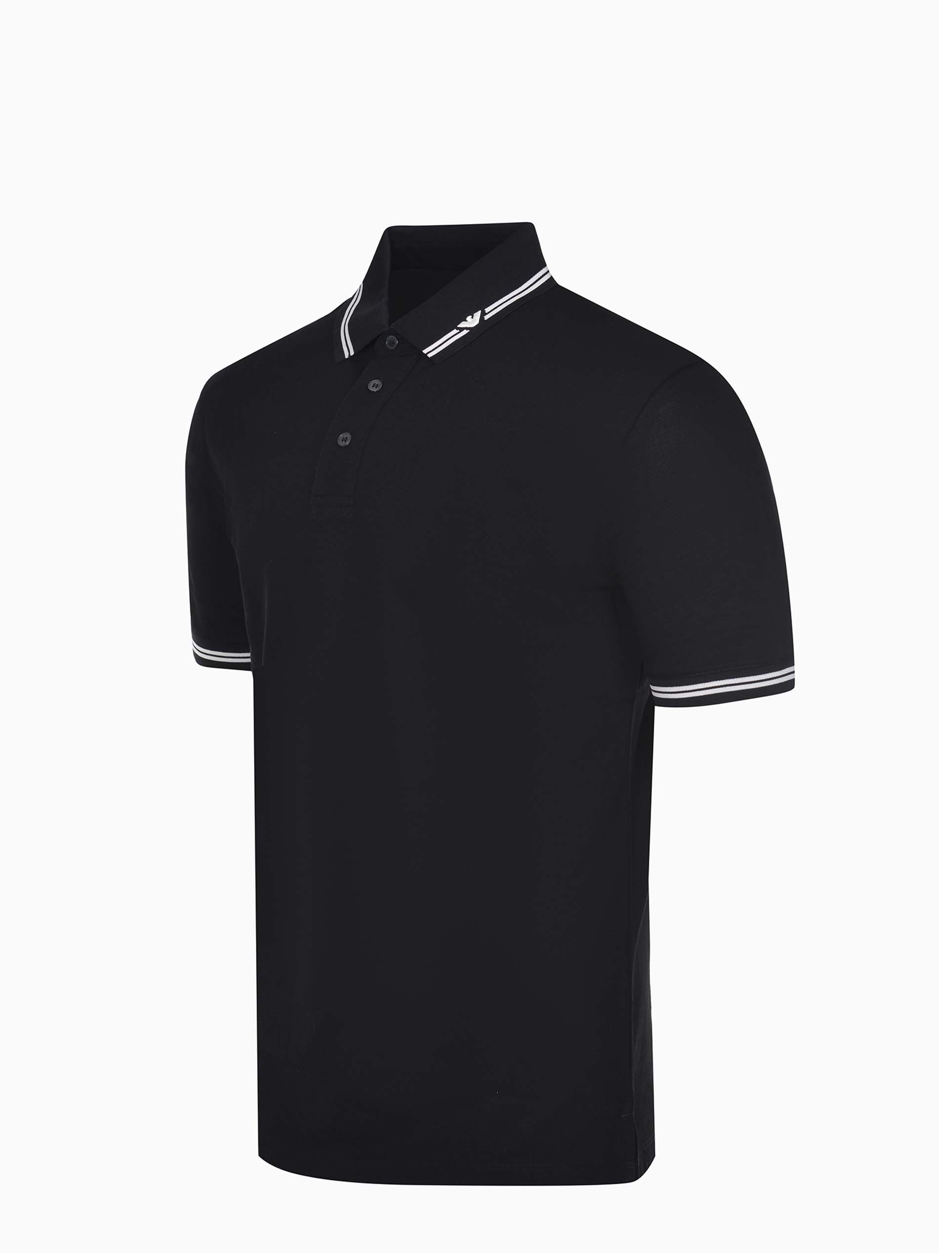 Emporio Armani -Hemd aus schwarzem Piqué. Kurze Ärmel. Klassiker Kragen. Manschetten mit kontrastierenden Details. Drei-Knopf-Schließung vorne. Kontrastierende Logo -Stickerei am Kragen. Boden mit Seitenschlitzen. 100% Baumwolle